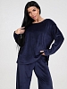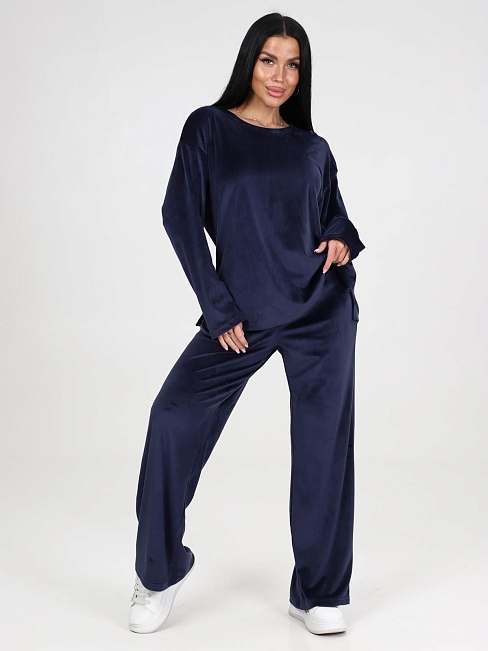 Женский велюровый костюм серого цвета, состоящий из свободного свитшота с длинными рукавами и брюк прямого кроя. Костюм выполнен из мягкого велюра, что делает его комфортным для повседневной носки, прогулок или домашнего отдыха.