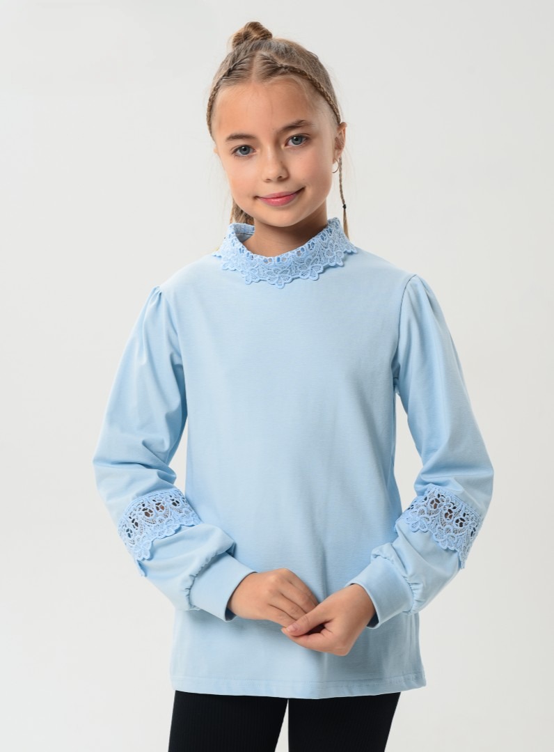Детская блузка "Алиса" длинный рукав / Голубой