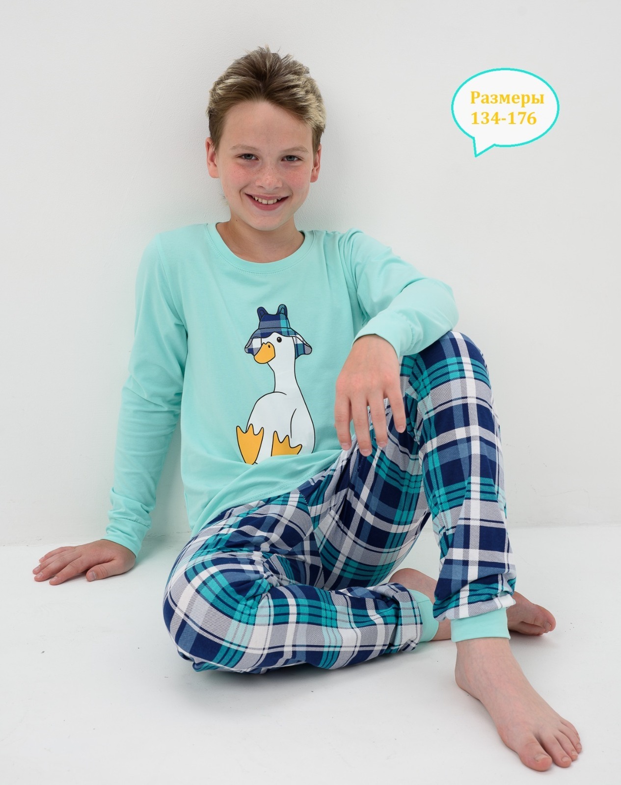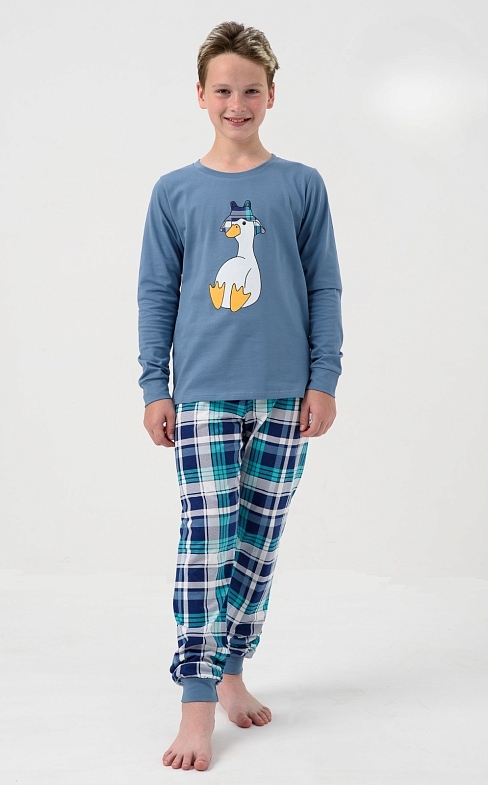 Пижама детская "Франт" для мальчика с принтом - это удобный домашний комплект свободного кроя для детей и подростков. Домашний костюм для мальчика без карманов выполнен из мягкого, легкого и комфортного трикотажа средней плотности, не сковывает движений. Хлопковая пижама подойдет для сна, в садик, одежды для дома и игр с друзьями. Манжеты надежно фиксируются и не позволяют сползать, что придаёт дополнительное удобство при носке пижамы. Брюки выполнены на резинке, мягко и приятно прилегают к телу, не давит на живот и не вызывает дискомфорта. Футболка с длинными рукавами согреет ребенка в прохладные дни. Пижама обеспечивает комфортное телесное ощущение как в летний, так и в зимний период. Органический 100 % хлопок не вызывает раздражения на коже ребенка и впитывает влагу, выделяемую телом во время сна. Пижамный костюм не садится после стирки, не линяет и не теряет яркости красок.