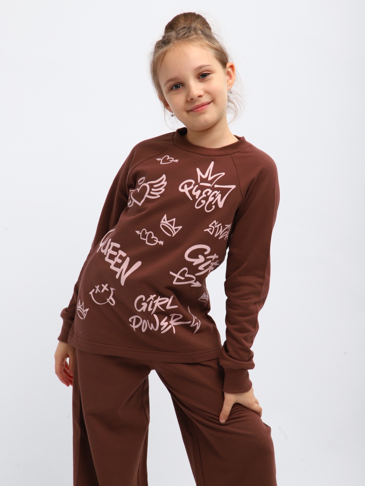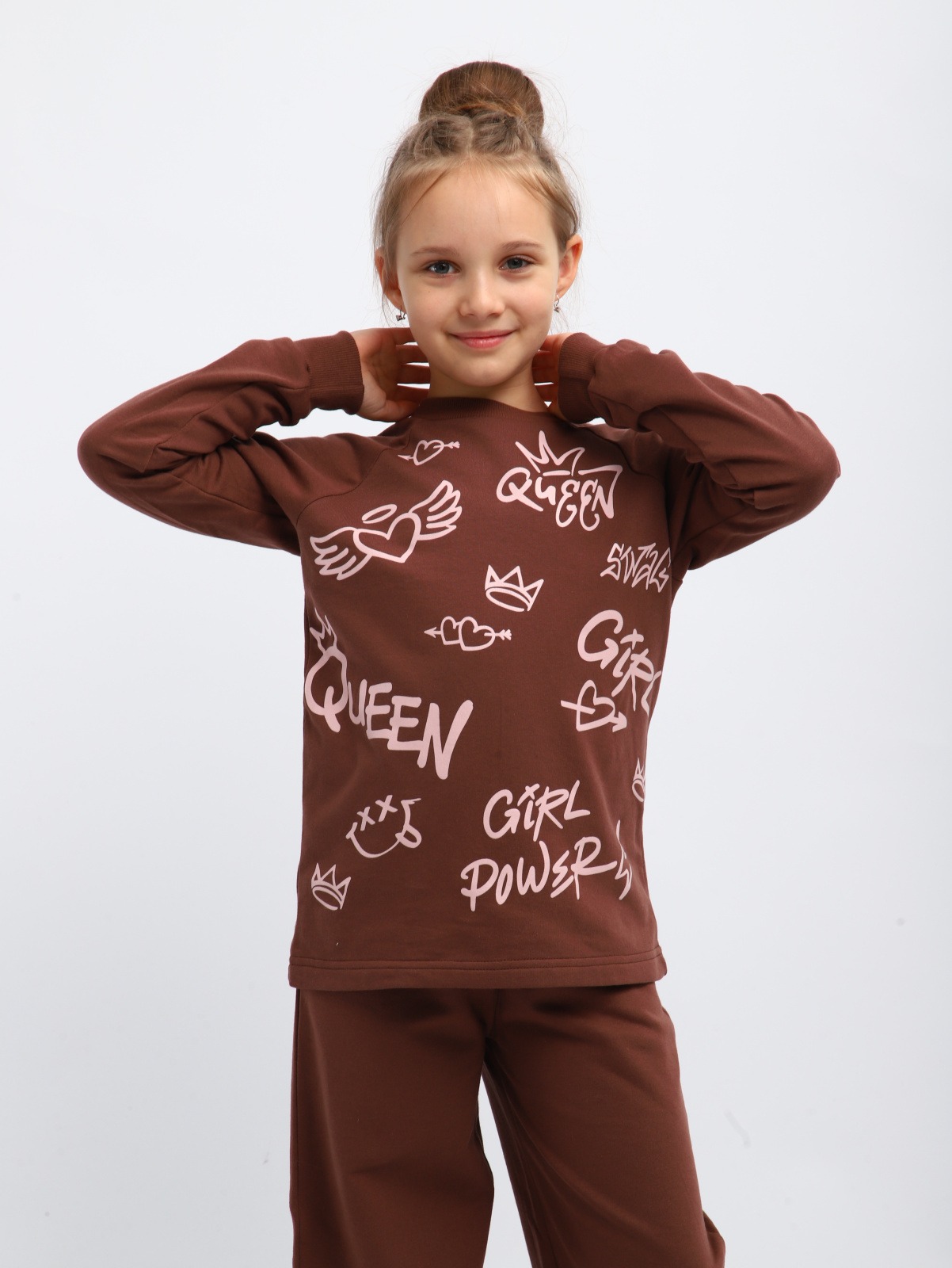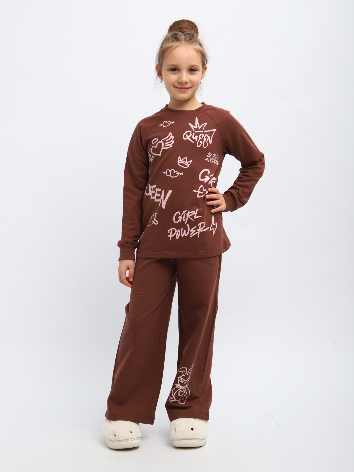 Пижама тёплая с брюками Квин - это идеальный выбор для уютных вечеров дома в прохладные осенние и зимние дни. Сшитая из мягкого трикотажа с легким начесом, эта пижама подарит девочке тепло и комфорт. Прямой свободный покрой не сковывает движений, а длинный рукав покроя реглан обеспечивает дополнительное удобство. Модель с брюками и длинным рукавом идеально подходит для сна и отдыха дома. Принт в виде короны на кофточке добавит пижаме индивидуальности и стиля. Эта теплая и уютная пижама станет любимой одеждой для девочек-подростков, которые ценят комфорт и практичность.
