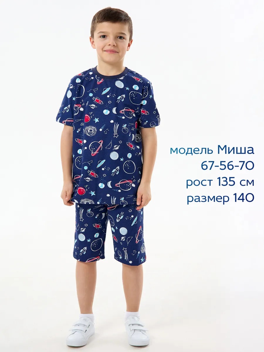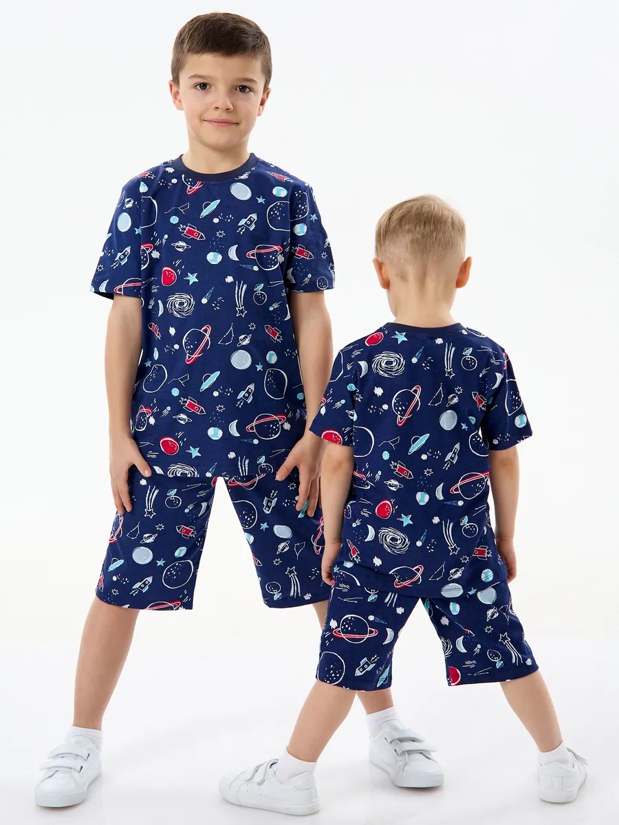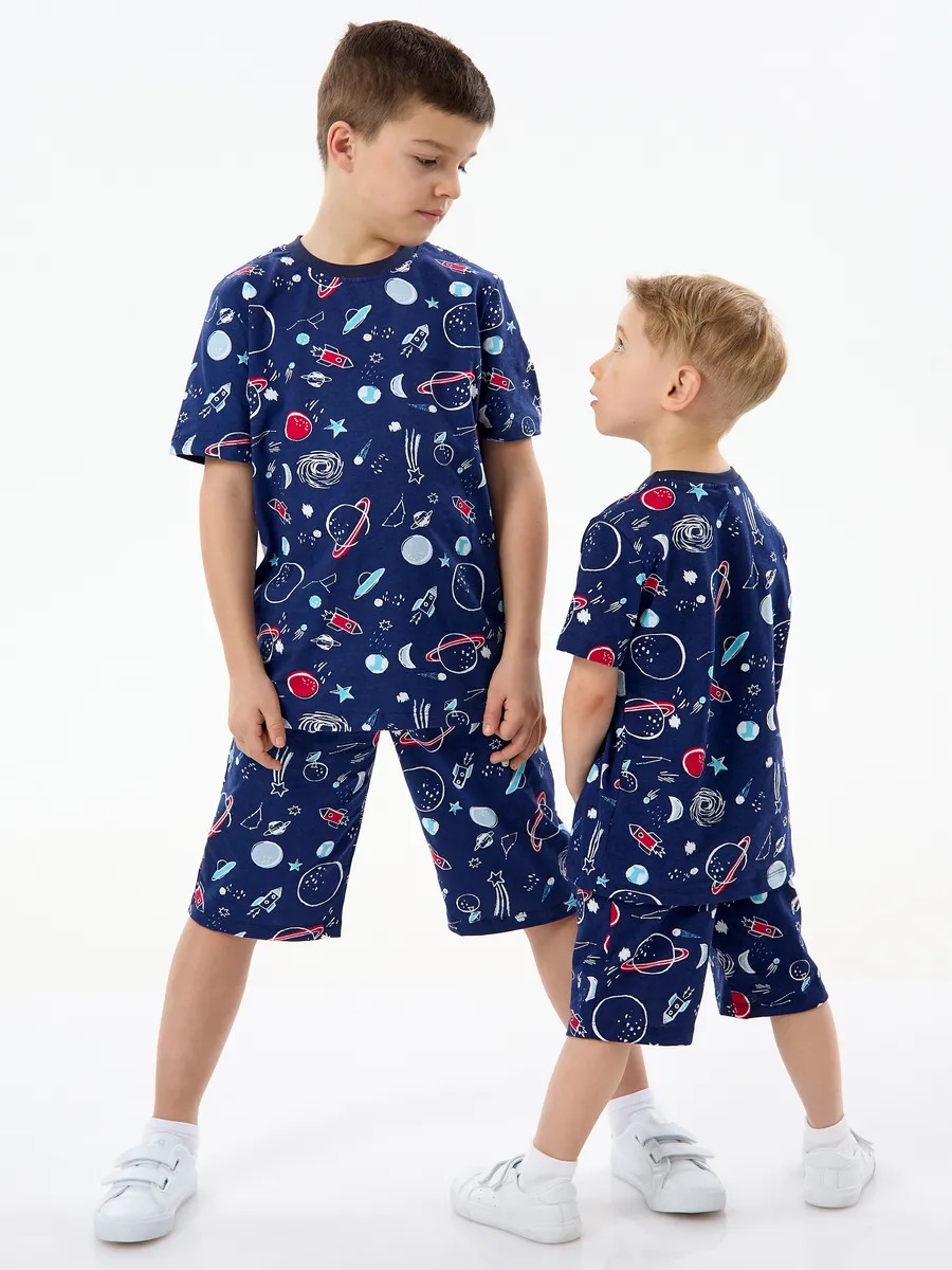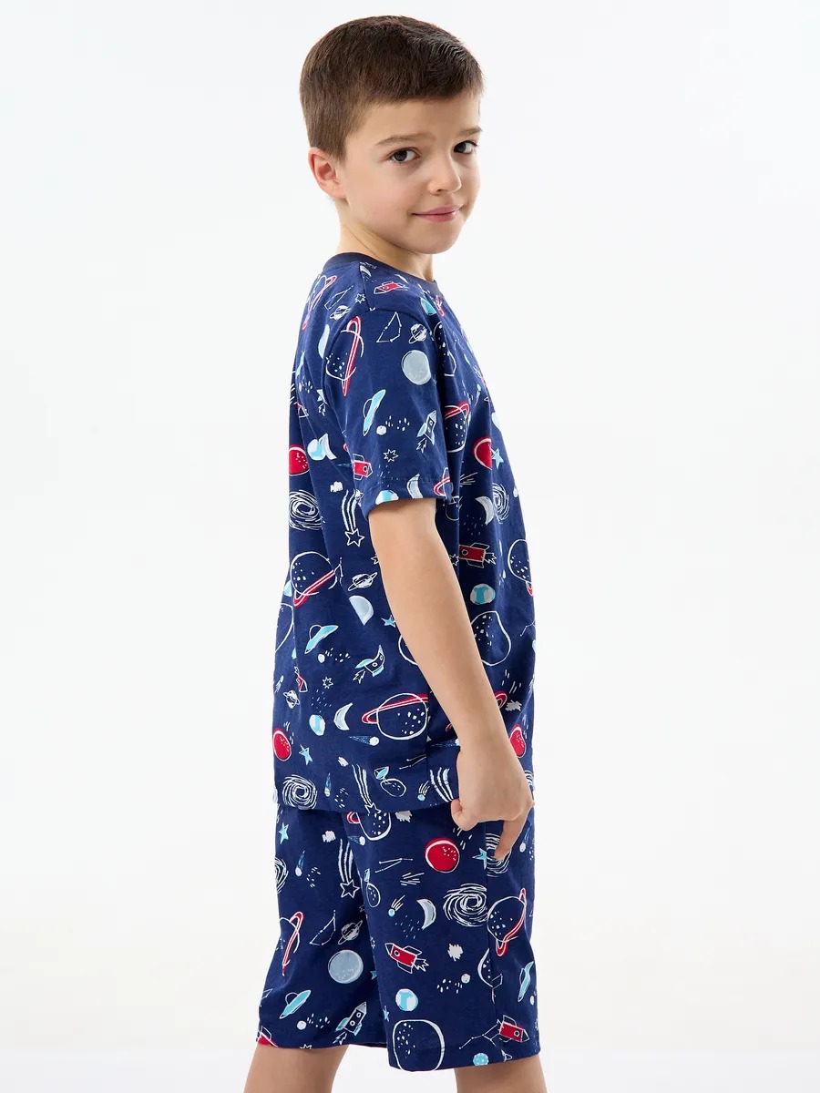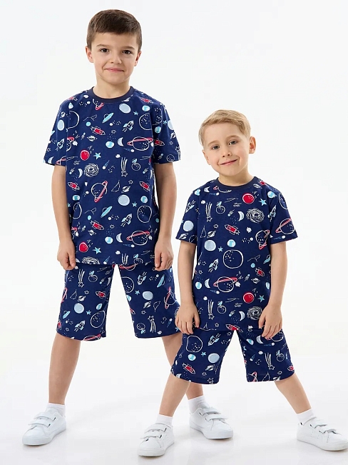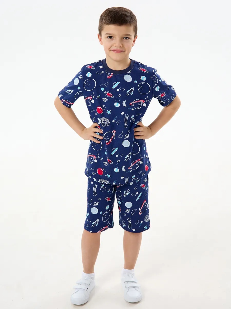 Детская пижама с шортами "Сорванец" / Космос на синем