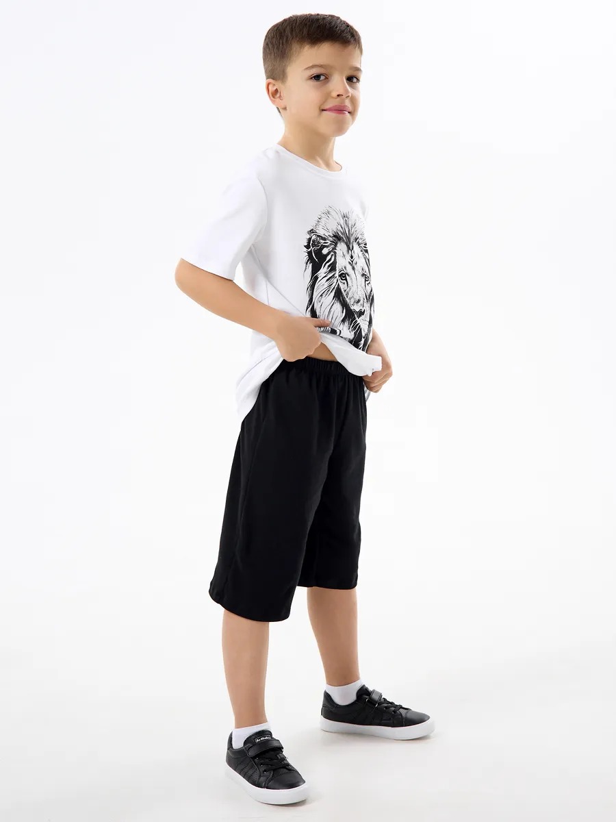 Детская пижама, как домашний комплект для мальчика от 3 до 13 лет из тонкого эластичного хлопкового трикотажа можно использовать и как пижаму для сна в садике или дома, и как дачный набор или домашний летний костюм, ее можно надевать во время долгой поездки на машине или в поезде, для похода на пляж, для занятий гимнастикой. Пижама для мальчика из натурального хлопка гарантирует комфортный сон благодаря отличной воздухопроницаемости ткани. Удлиненная футболка для мальчика свободный крой, поэтому подойдет для ребенка любой комплекции. Свободные шорты для мальчика на мягкой эластичной резинке, длиной ниже колена, не стесняют движений во время сна и бодрствования.