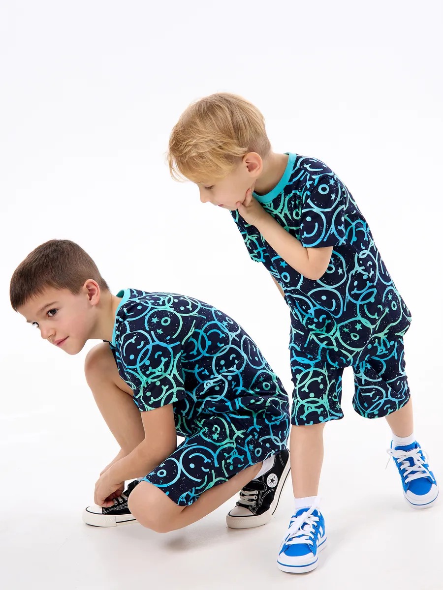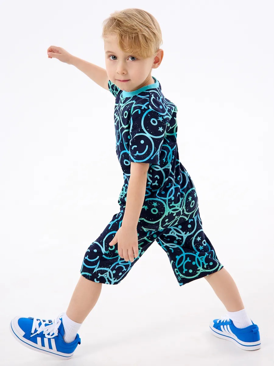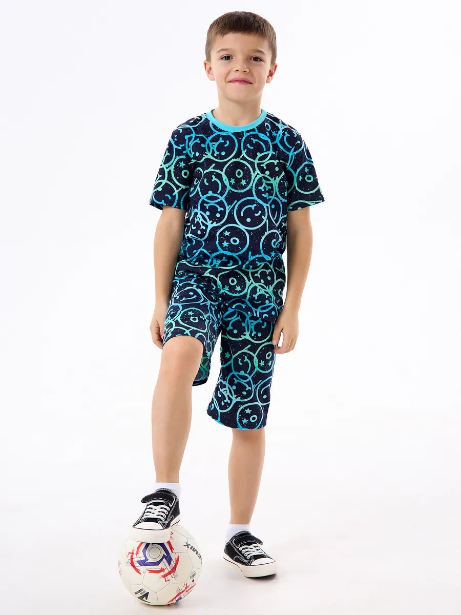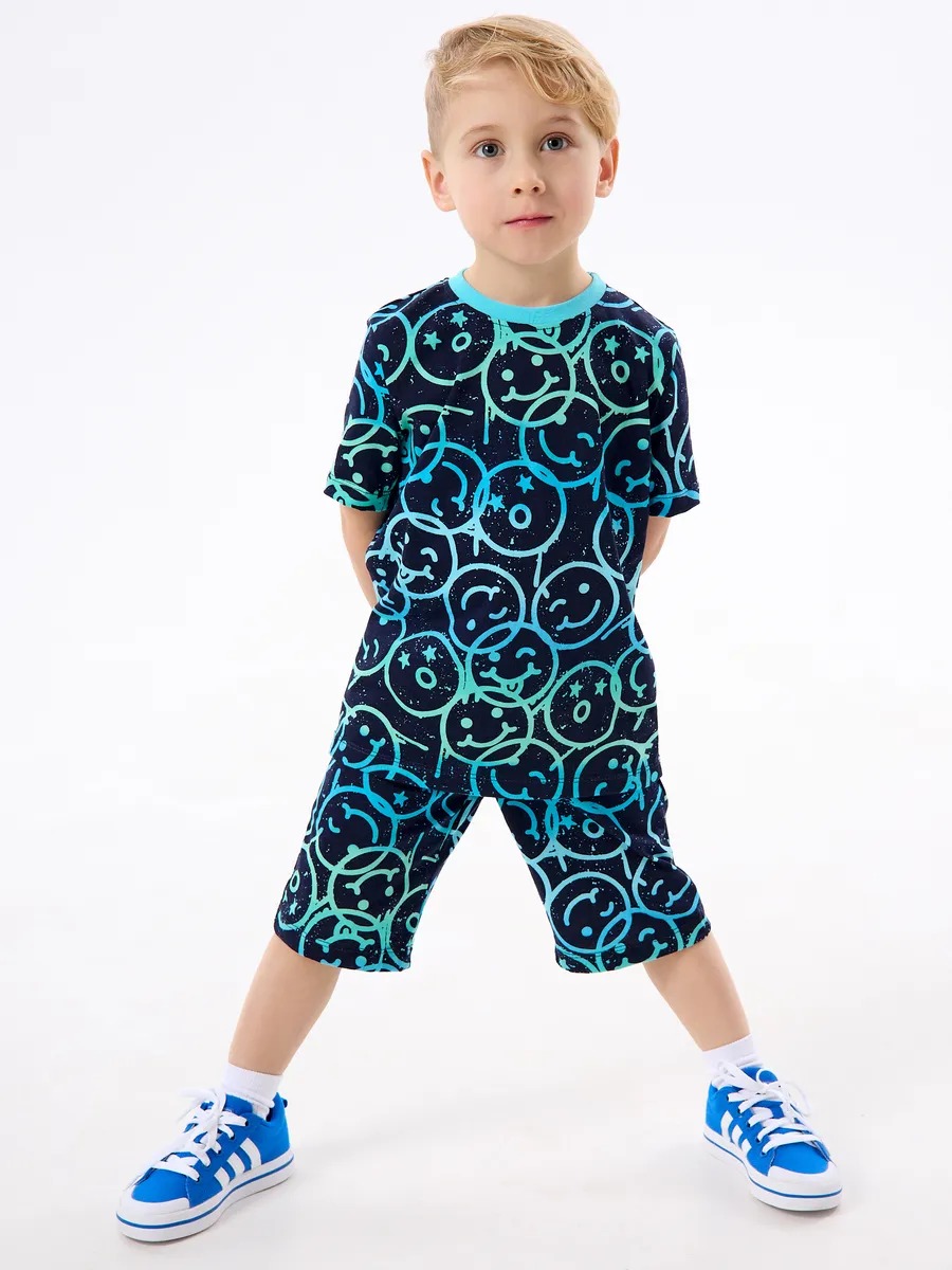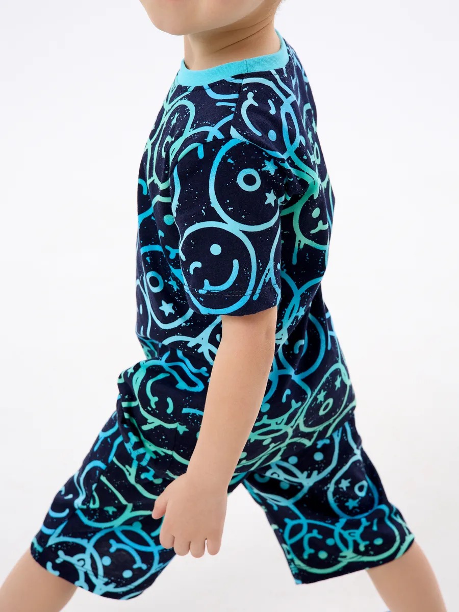 Детская пижама с шортами "Сорванец" / Смайлики на синем