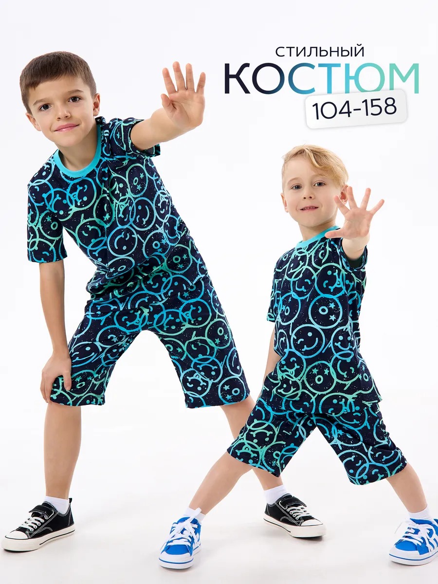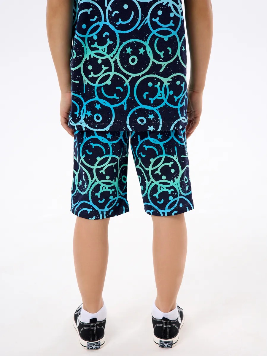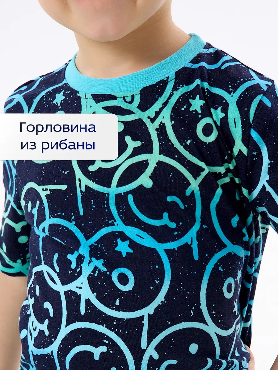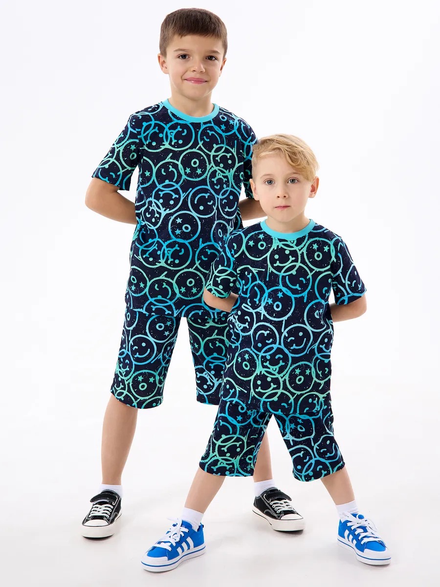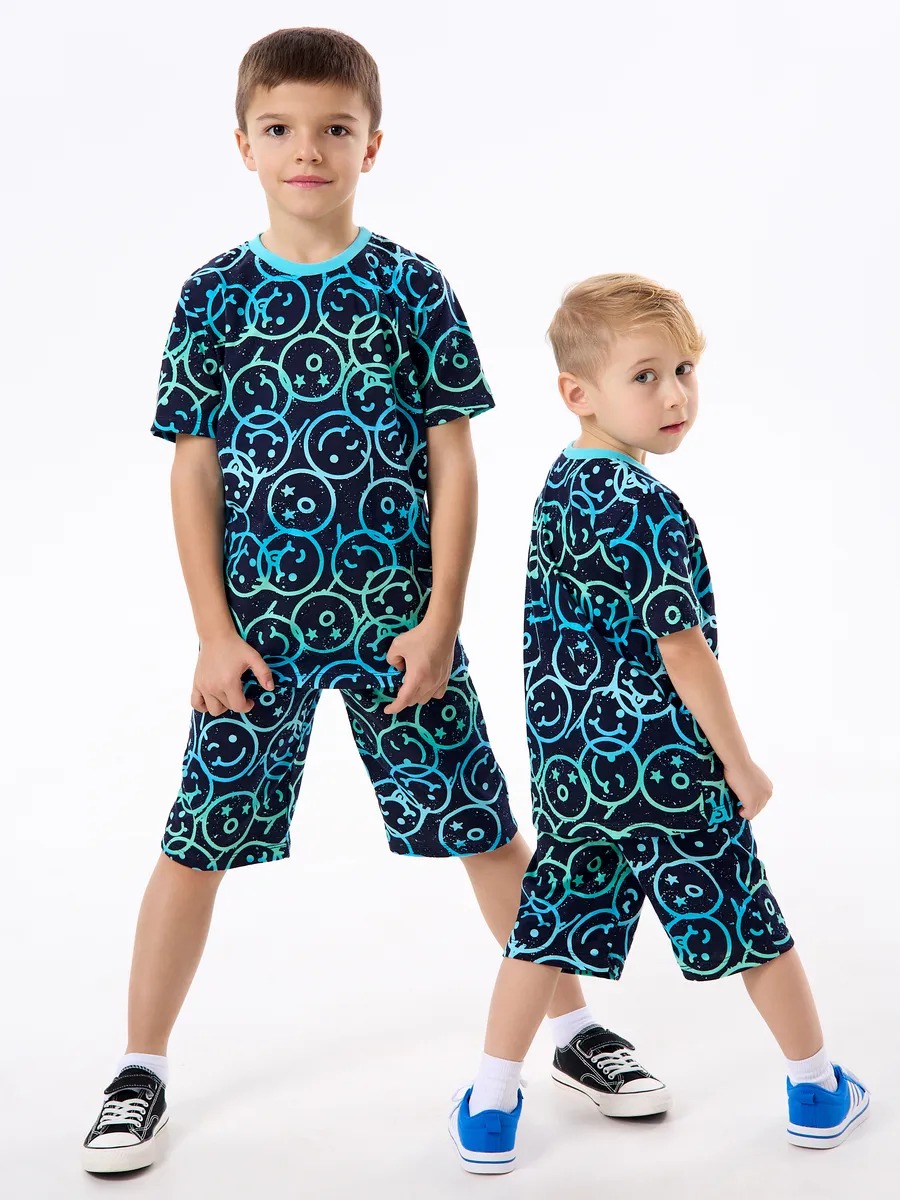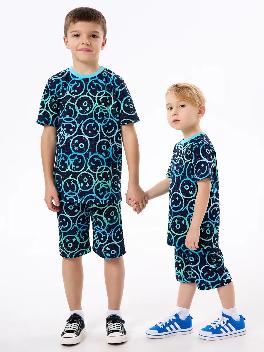Детская пижама с шортами "Сорванец" / Смайлики на синем