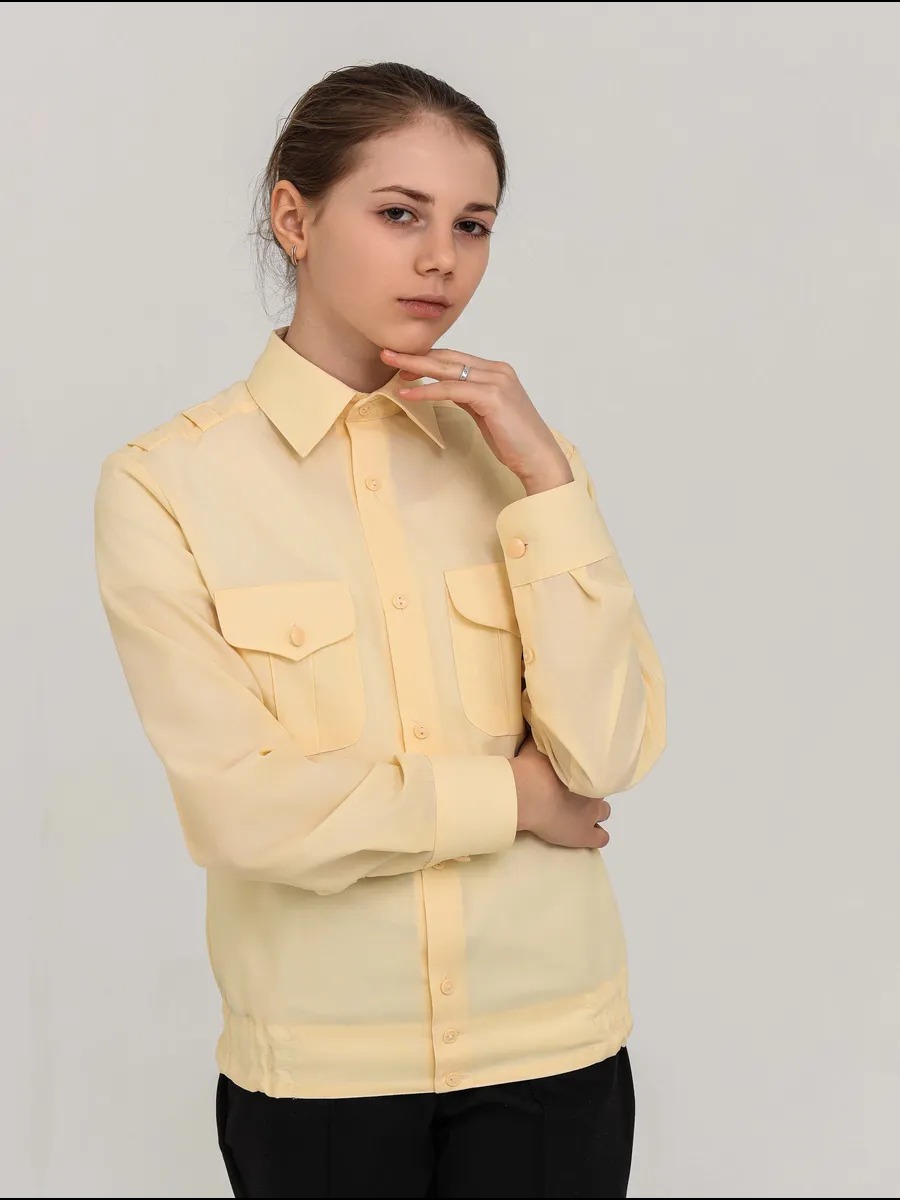 Детская рубашка кадетская (длинный рукав) / Кремовый