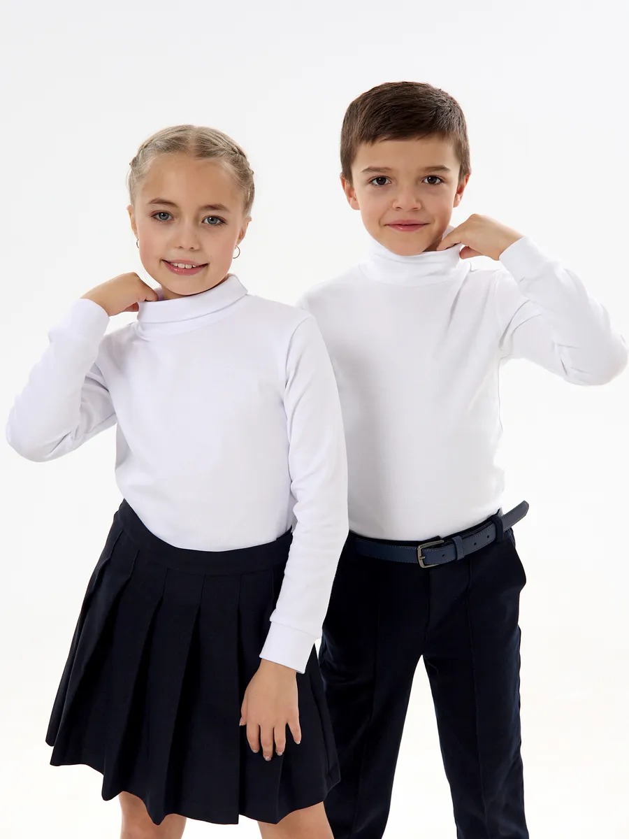 Базовая водолазка для девочки с воротником и рукавами на манжете сделана из хлопковой трикотажной ткани рибаны с высокой стойкой, который приятно облегает тело. Кофта теплая и защищает от холода - прекрасный вариант для школы и повседневной носки. Наличие эластана обеспечивают прекрасную растяжимость, что дает хорошую посадку бадлона по фигуре и не ограничивает движения. Высокая стойка с отворотом хорошо защищает горло ребенка в прохладную погоду. Однотонная водолазка для мальчика имеет классический дизайн и подойдет для любого образа. Водолазка с высоким горлом - незаменимая вещь и в повседневной жизни.