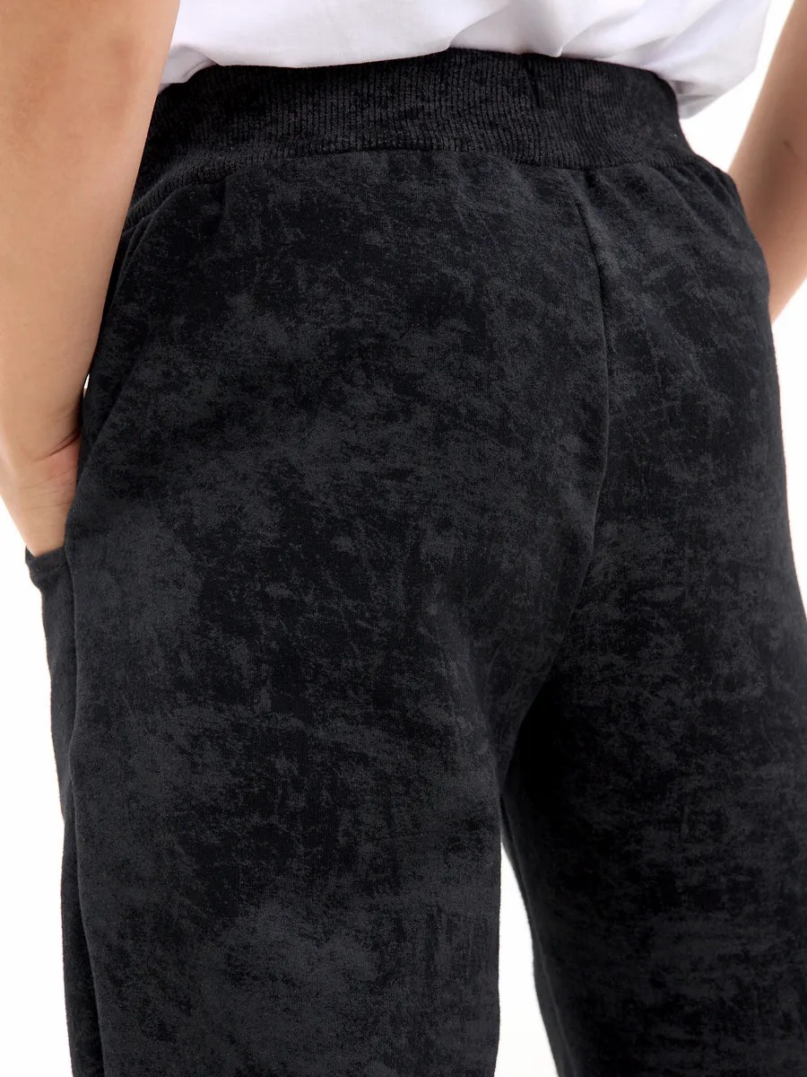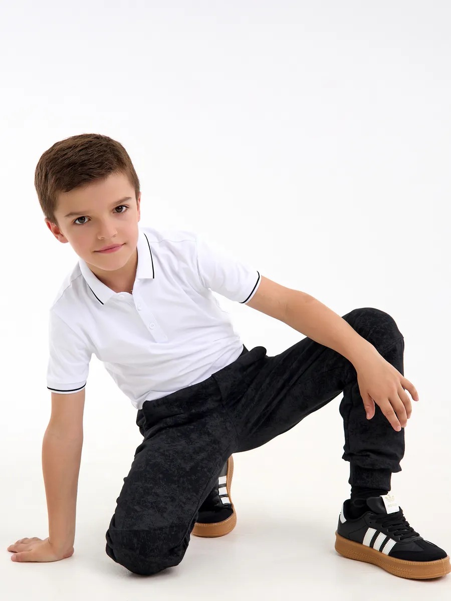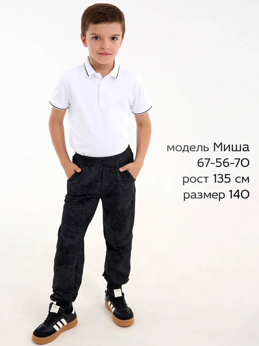 Эластичные волокна футера устойчивы к изнашиванию, не теряют цвет даже после многочисленных стирок. Модель брюк полуприлегающая с удобными карманами. Пояс выполнен из кашкорсе со свободной и эластичной резинкой на талии, что обеспечивает дополнительный комфорт и надежную посадку на талии ребёнка. Манжеты внизу брюк придают дополнительное удобство в носке, а также создают модные и зауженные линии. Оверсайз прямой фасон идеальная модель для любого случая