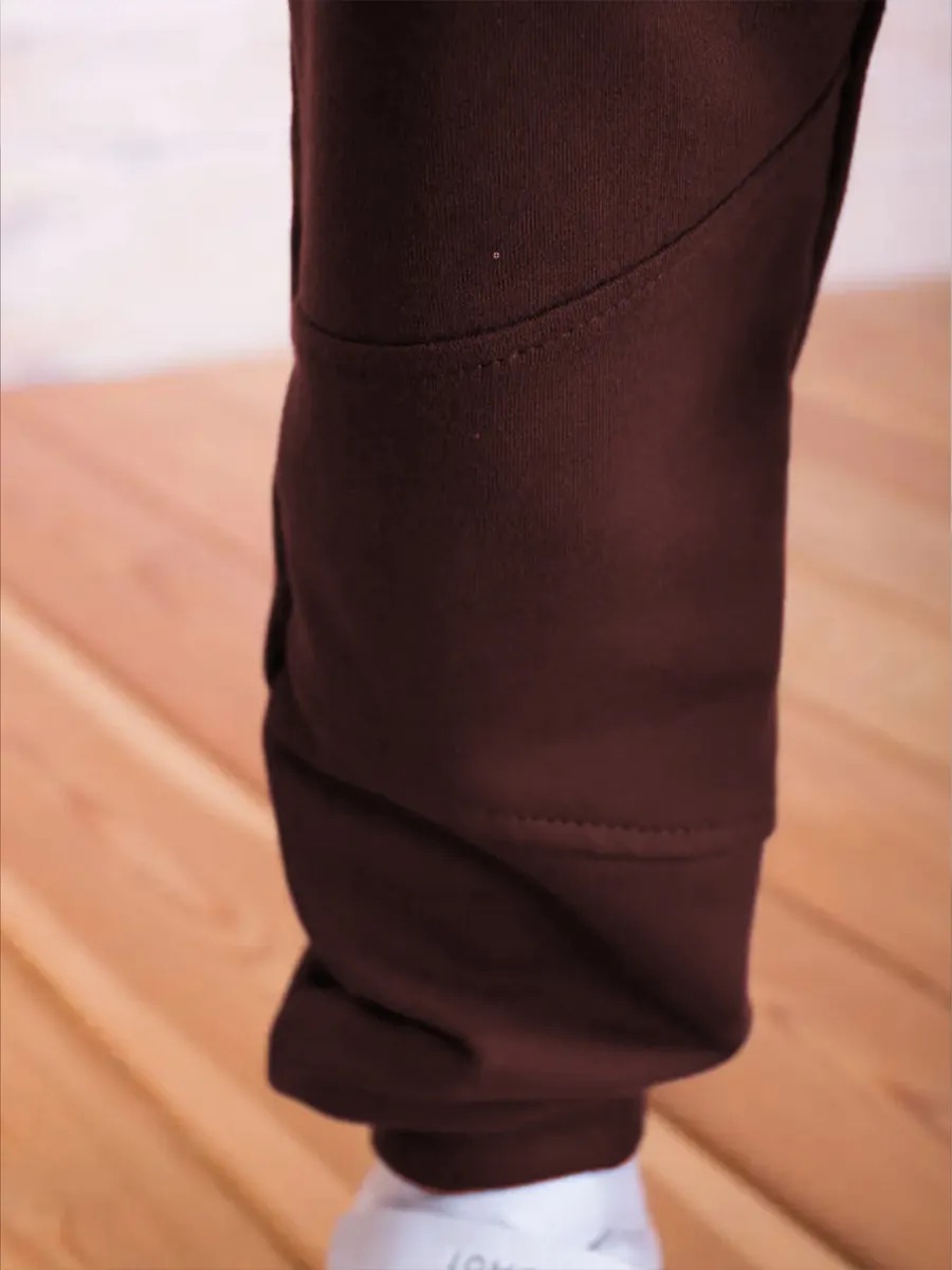 Эластичные волокна футера устойчивы к изнашиванию, не теряют цвет даже после многочисленных стирок. Модель брюк полуприлегающая с удобными карманами. Пояс выполнен из кашкорсе со свободной и эластичной резинкой на талии, что обеспечивает дополнительный комфорт и надежную посадку на талии ребёнка. Манжеты внизу брюк придают дополнительное удобство в носке, а также создают модные и зауженные линии. Оверсайз прямой фасон идеальная модель для любого случая