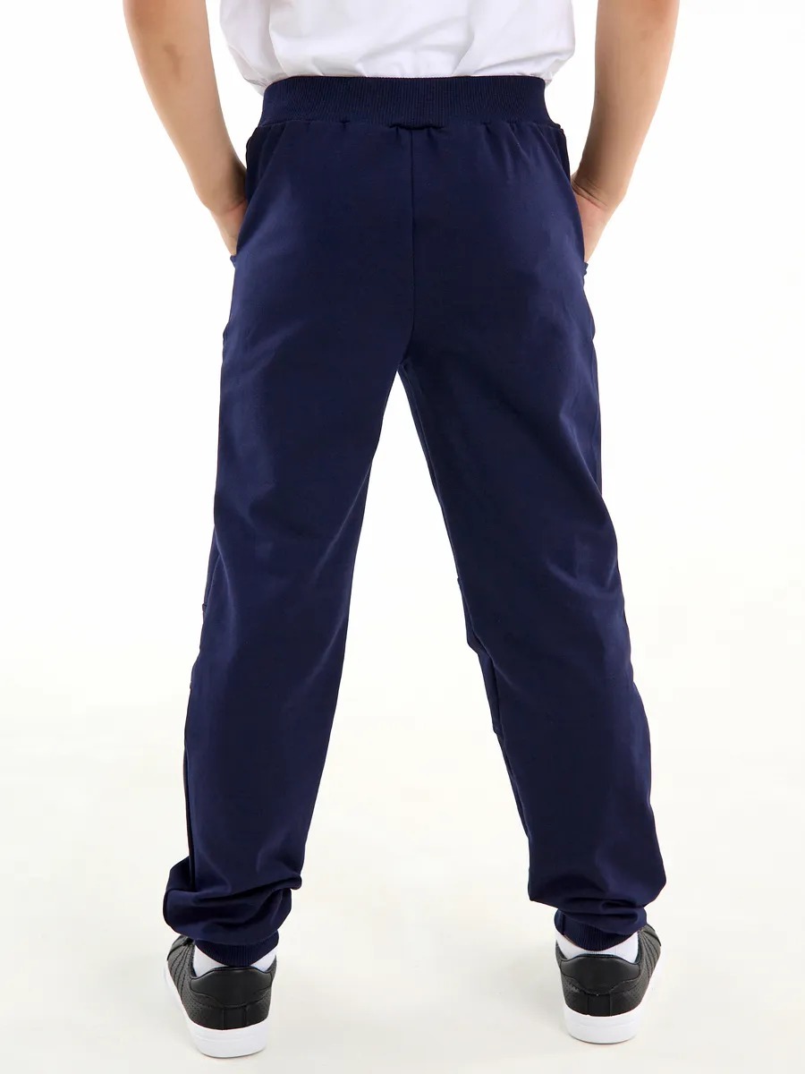 Коленные части раскроены в цвет брюк, что придаёт брюкам спортивные и стильные акценты.