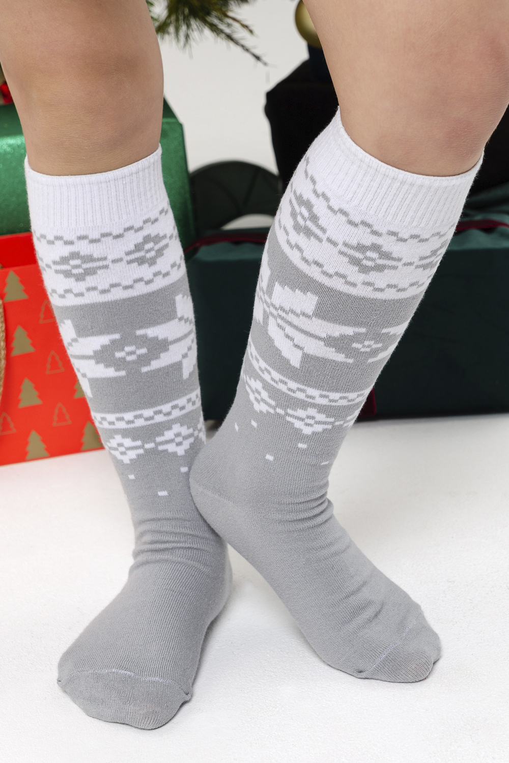 Очаровательные хлопковые гольфы отлично подойдут для встречи Нового года в семейном кругу или тематических фотосессий. Носки с новогодним рисунком это отличный сувенир друзьям, детям и коллегам. Благодаря удобной упаковке, можно подарить каждую пару отдельно. Новогодний принт на носках задает веселое настроение и притягивает взгляды окружающих. Высокое качество нитей сохраняет форму и цвет после стирки, а также препятствует образованию катышек. Такой новогодний подарок будет приятно получить и подарить!