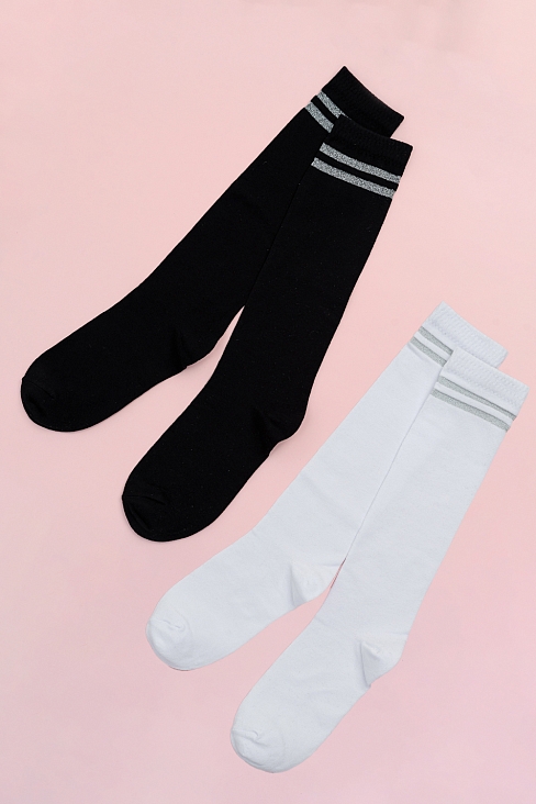 Детские гольфы Люрекс (набор 2 пары) / белый+черный