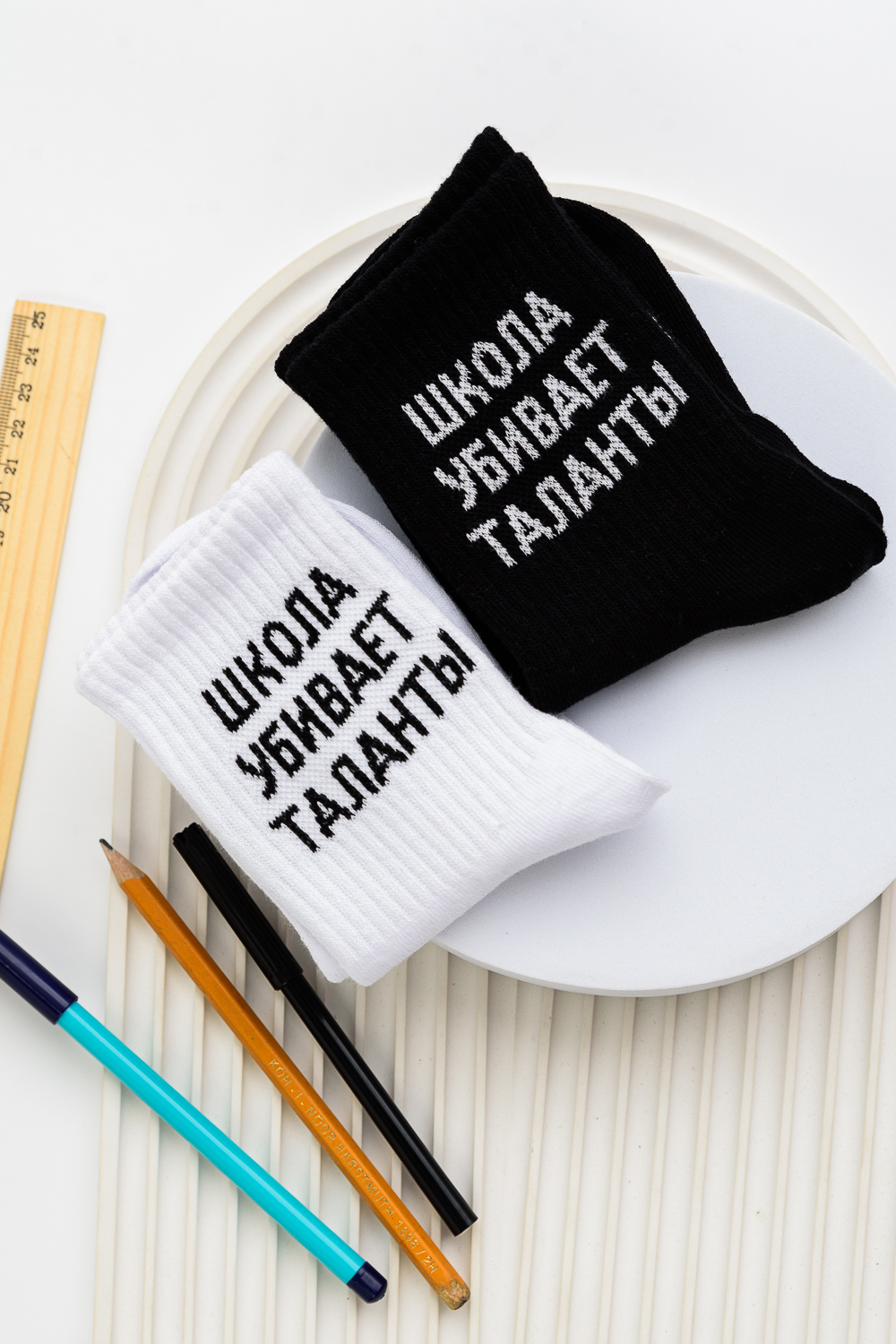 Комплект носков для детей. Широкая резинка, надпись Школа убивает таланты В комплекте 2 пары.