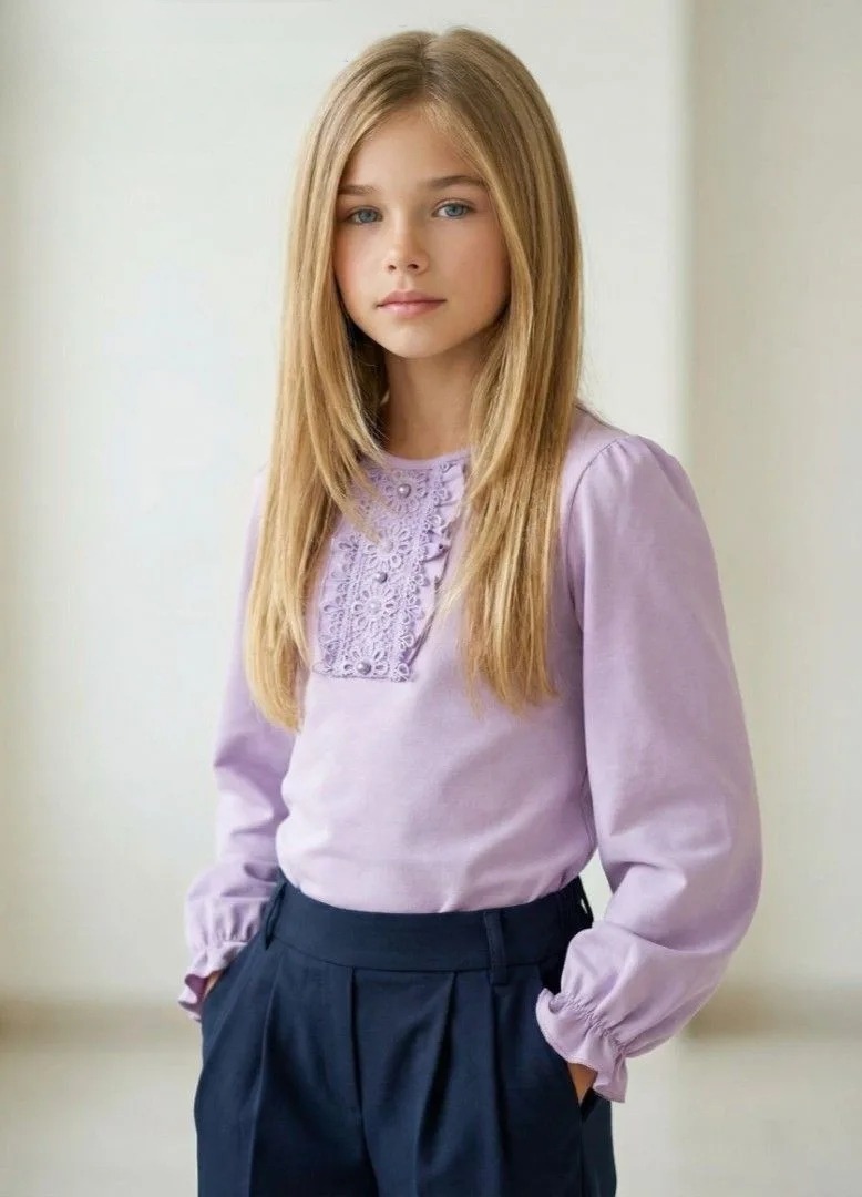 Детский джемпер с длинными рукавами - стильная модель для девочек школьного возраста, выполненная из качественного трикотажного полотна.