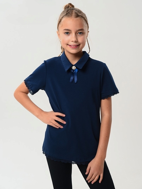 Детский джемпер "Меган" короткий рукав / Темно-синий