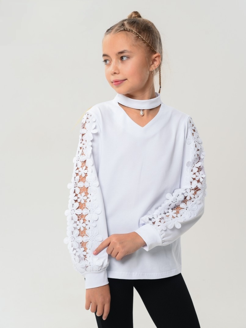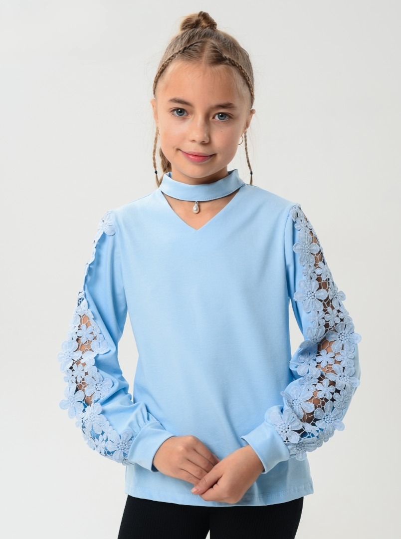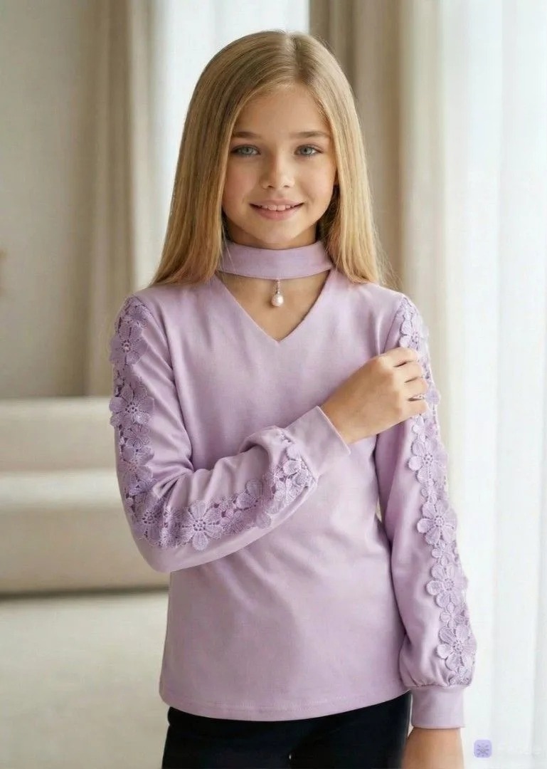Детский джемпер с длинными рукавами - стильная модель для девочек школьного возраста, выполненная из качественного трикотажного полотна.