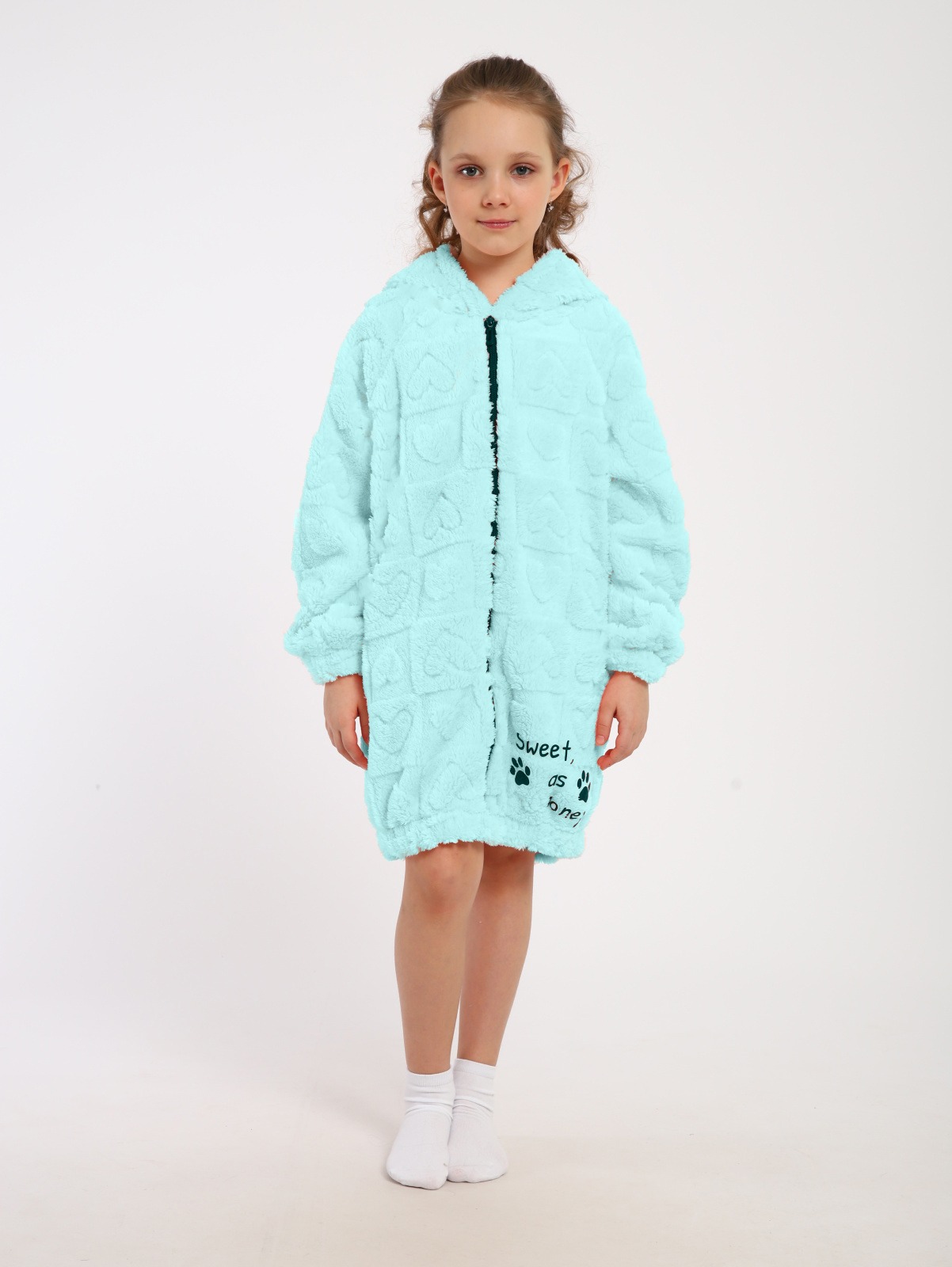 Халат на молнии домашний "Мурлыка" / Бирюза – это идеальный выбор для девочек, предпочитающих комфорт и стиль в повседневной жизни. Этот халат выполнен из мягкого и теплого полиэстера, который обеспечивает уютное ощущение при носке. Халат из материала велсофт имеет длинные рукава прямого покроя и удобные карманы в боковых швах, что делает его идеальным для использования как дома, так и во время спортивных занятий.