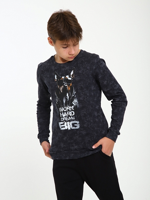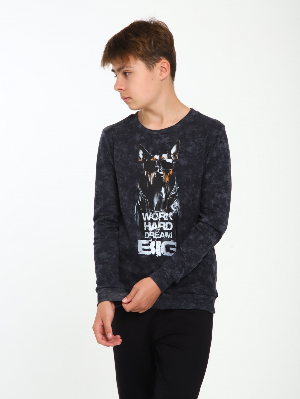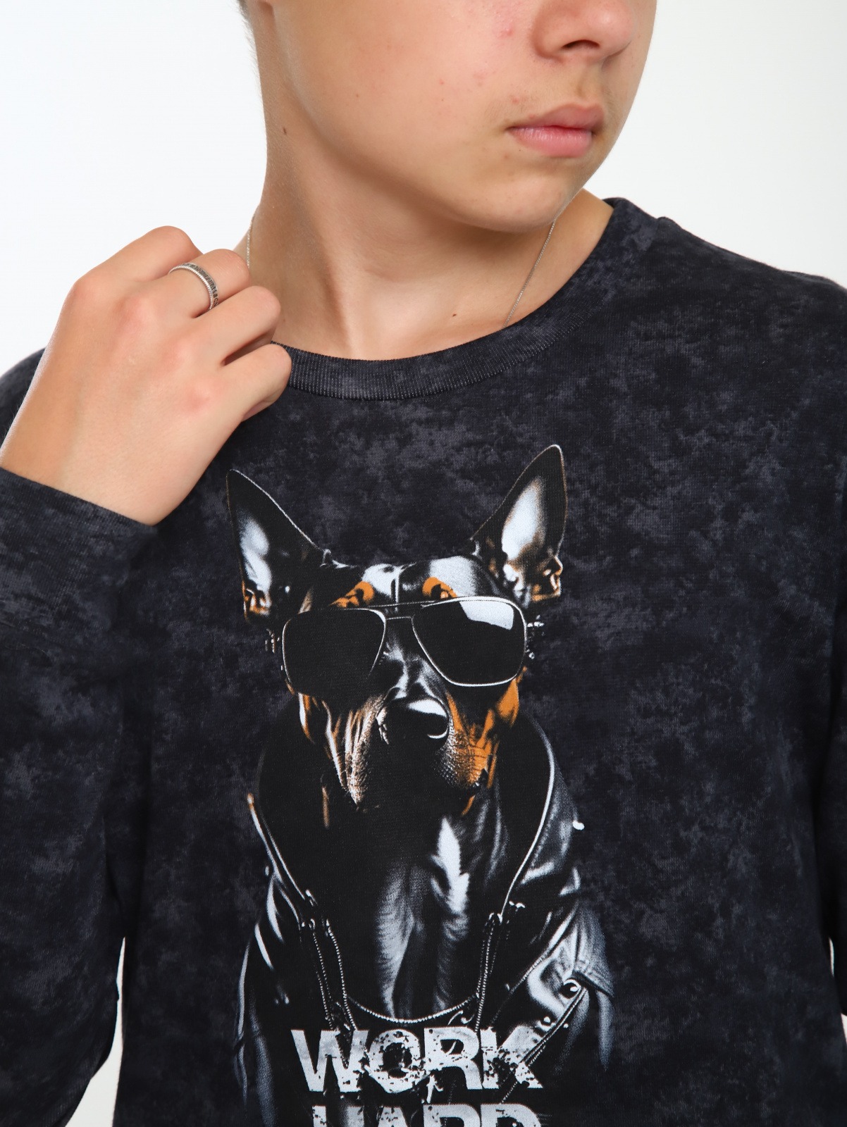 Свитшот Мирон для мальчика подростка с теплым начесом внутри. Кофта для подростка с рисунком добермана будет отличным дополнением гардероба. Кофта для мальчика имеет идеальную посадку на фигуре. Свитшот черный, это делает его универсальным и стильным. Детский джемпер из натурального хлопкового трикотажа на флисе, который обеспечивает комфорт и мягкость на протяжении всего дня.