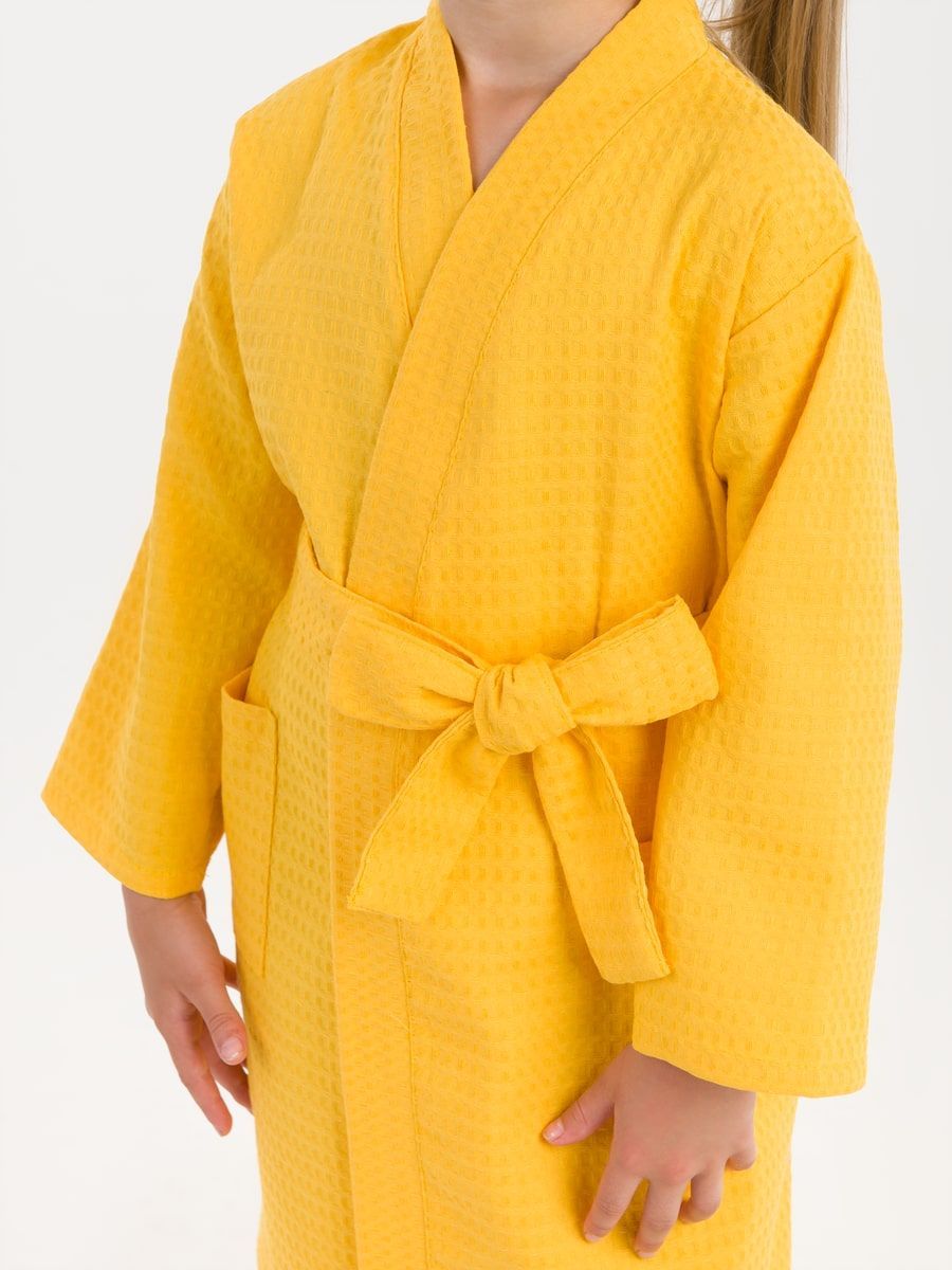 Вафельный халатик для детей, выполненный из натурального материала – 100% хлопка с карманом, удобен и универсален. Ткань не вызывает аллергии и раздражения кожи, прекрасно пропускает воздух, быстро впитывает влагу и так же мгновенно сохнет. Форма халата с запахом и широким поясом позволит использовать его долгое время, несмотря на быстрый рост ребенка. Поэтому для домашнего ухода за детьми вафельный халат является одной из самых удобных и практичных вещей. Халат из вафельной ткани легкий и практичный, благодаря натуральному составу ткани сохраняется комфортная температура тела, идеальная для жаркого лета. После любых водных процедур, вафельный халатик создаст приятную прохладу и быстро высушит тело, он свободный и приятный к детской коже.