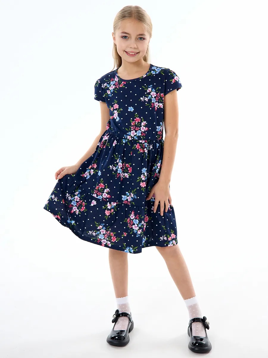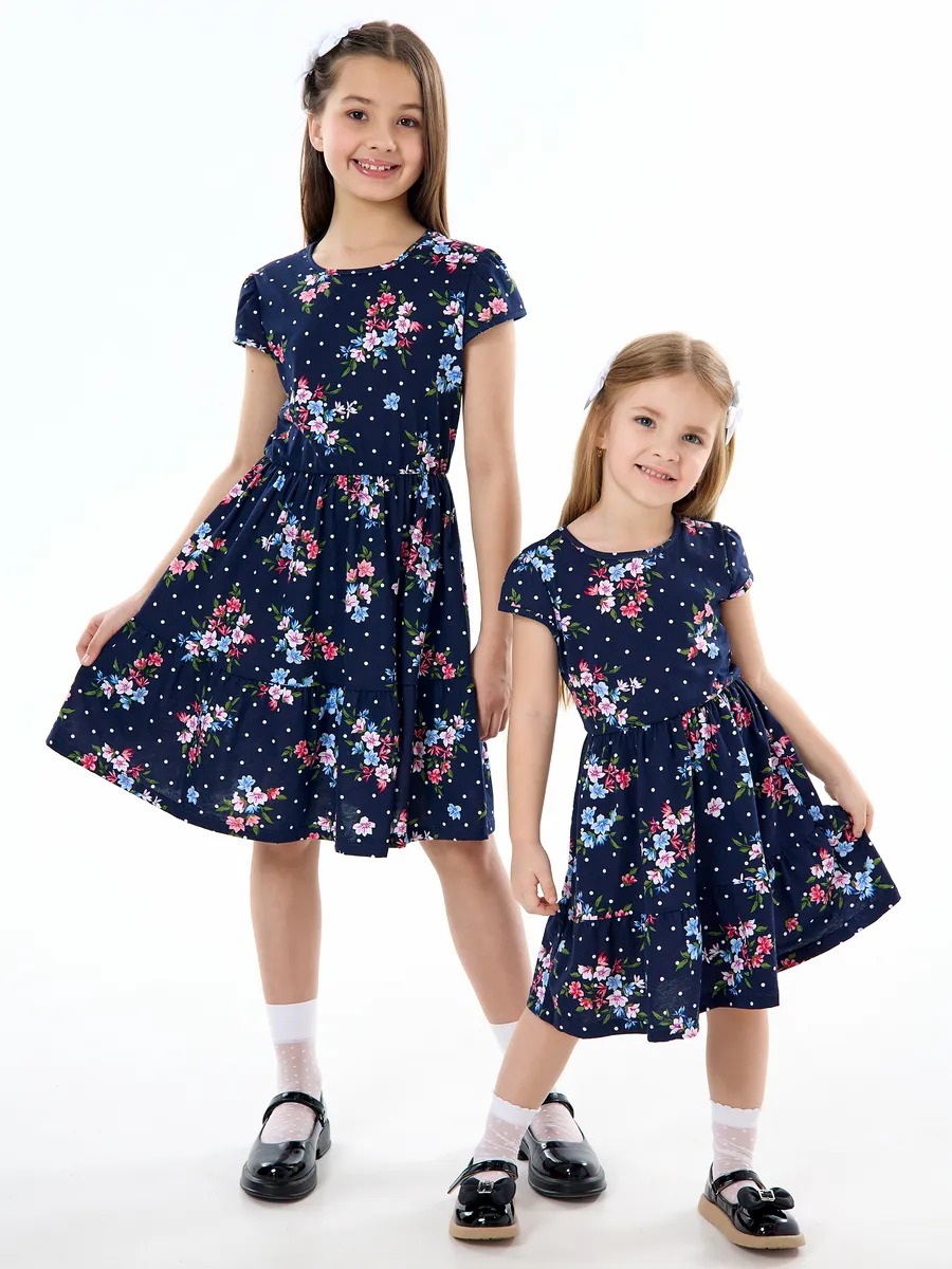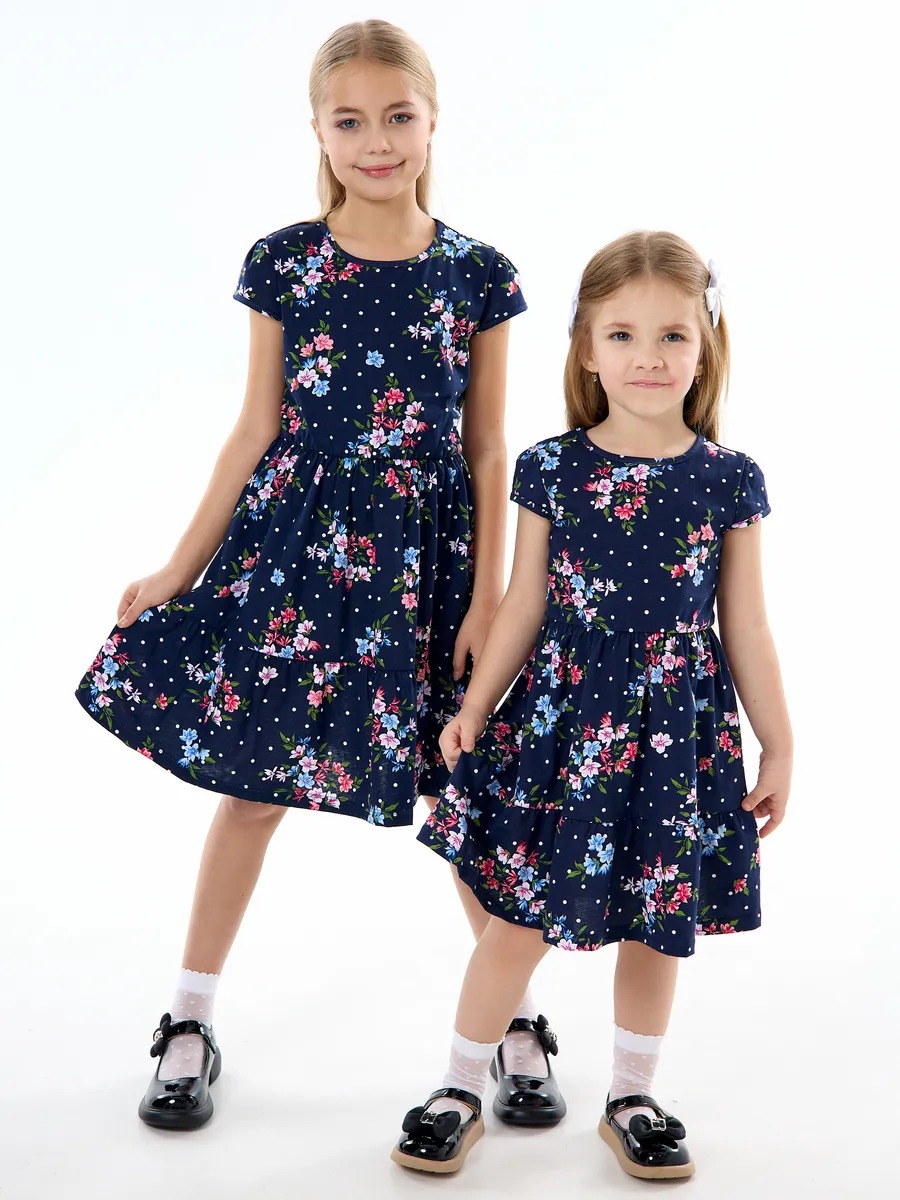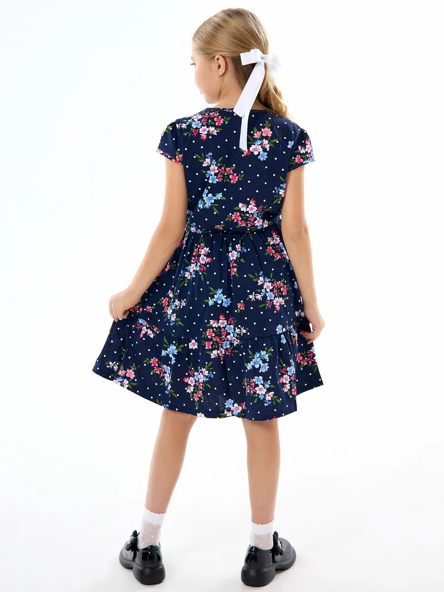 Легкое платье для девочки, удобное в носке, отлично подходит для прогулок в теплую погоду летом и на любое мероприетие. Платьишко выглядит просто и одновременно роскошно благодаря яркой расцветке в мелкий нежный цветочек, удобному крою и летящей юбке с оборкой. Летнее платье с короткими рукавами из качественного хлопкового трикотажа. Платье с юбкой имеет свободный покрой со средней талией на эластичной потайной резиночке, поэтому подходит как для стройных, так и на пухленьких девочек. У платья рукав фонарик и длина ниже колена. Стильное свободное платье для девочки - универсальный вариант как на каждый день, так и на праздник или для танцев.