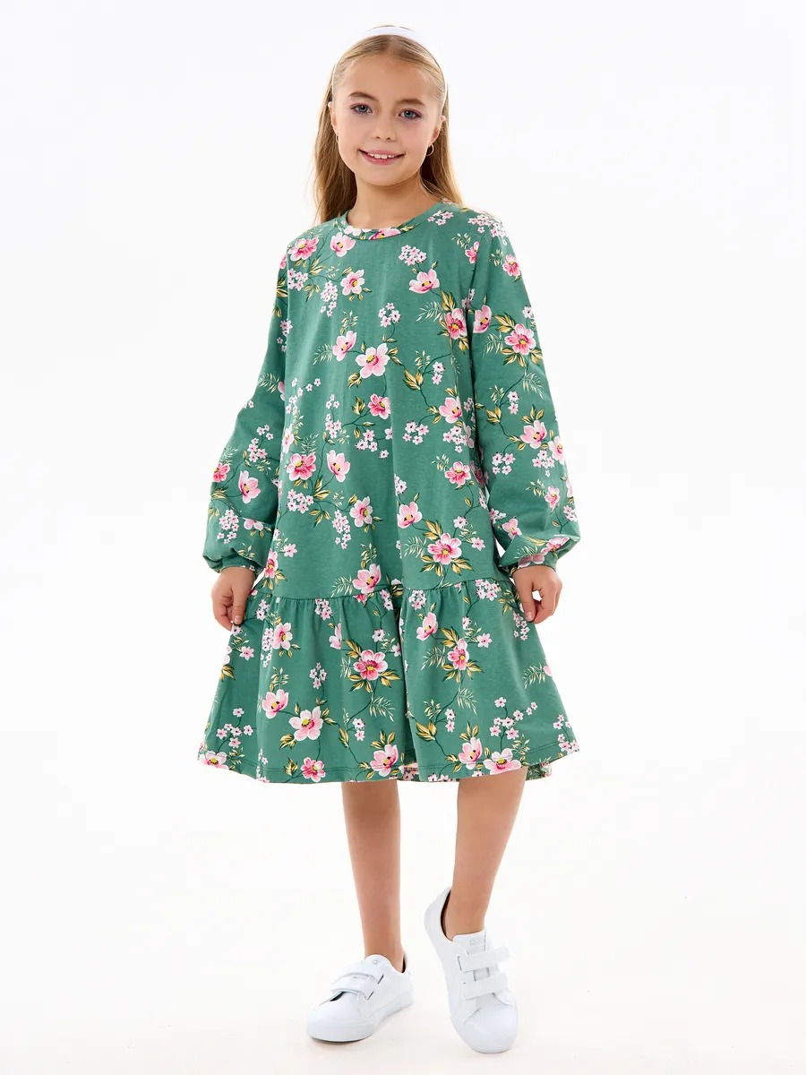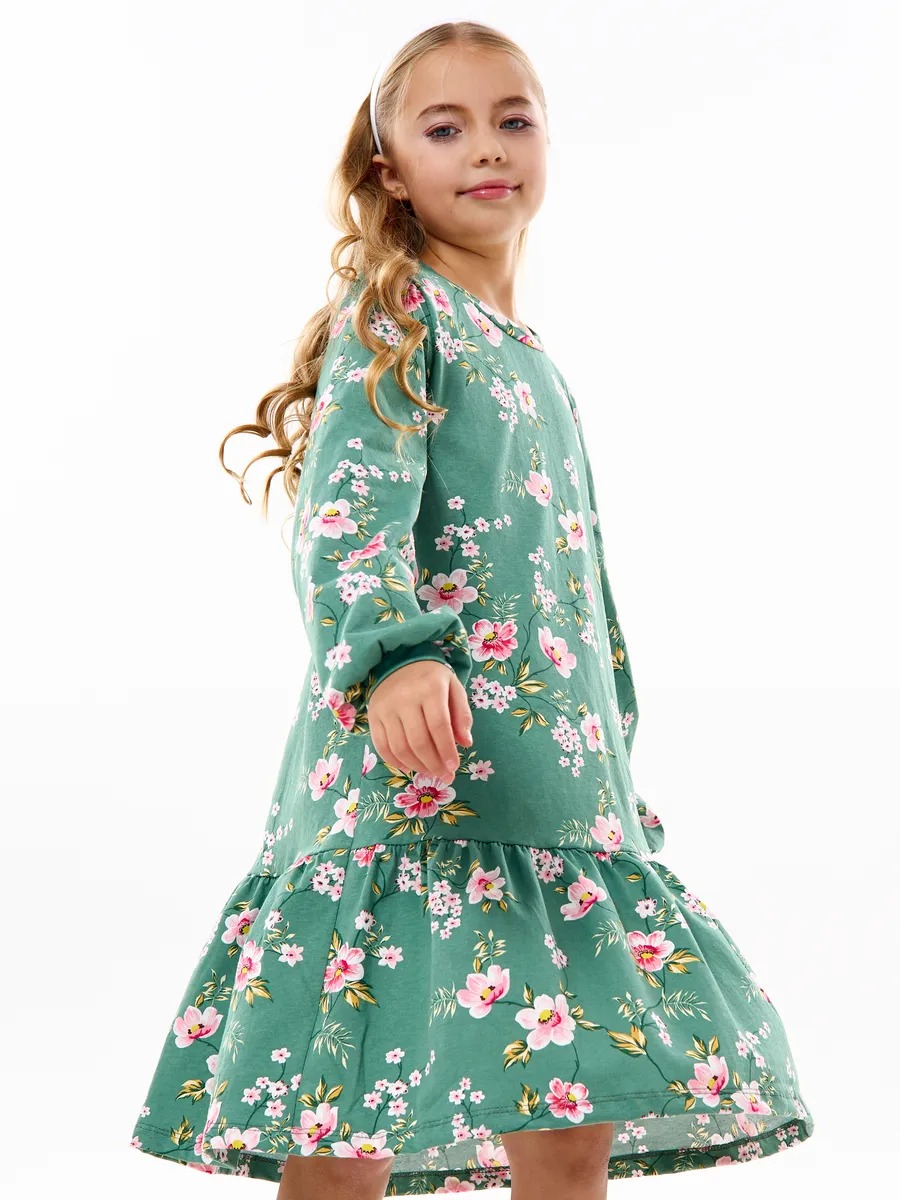 Платье для девочки нарядное c воланом - красивый вариант для дочки на каждый день и на праздник. Платье выполнено из хлопкового трикотажа, приятно к коже, оно не колется и не цепляется. Широкий размерный ряд от 104 до 158 позволяет подобрать вариант как для маленькой девочки в садик, так и для почти подростка в школу. Детское платье без лямок и бретелей рассчитано на возраст от 3 до 11 лет. Лаконичный дизайн платья точно понравится маленьким модницам. Крой трапеция с заниженной талией подойдет для девочек любой комплекции. Платье миди смотрится красиво и удобно в носке. Интересная и модная деталь - объемные рукава со сборкой. Платье на торжество не будет сковывать движений, поэтому ребенку будет удобно в нем.