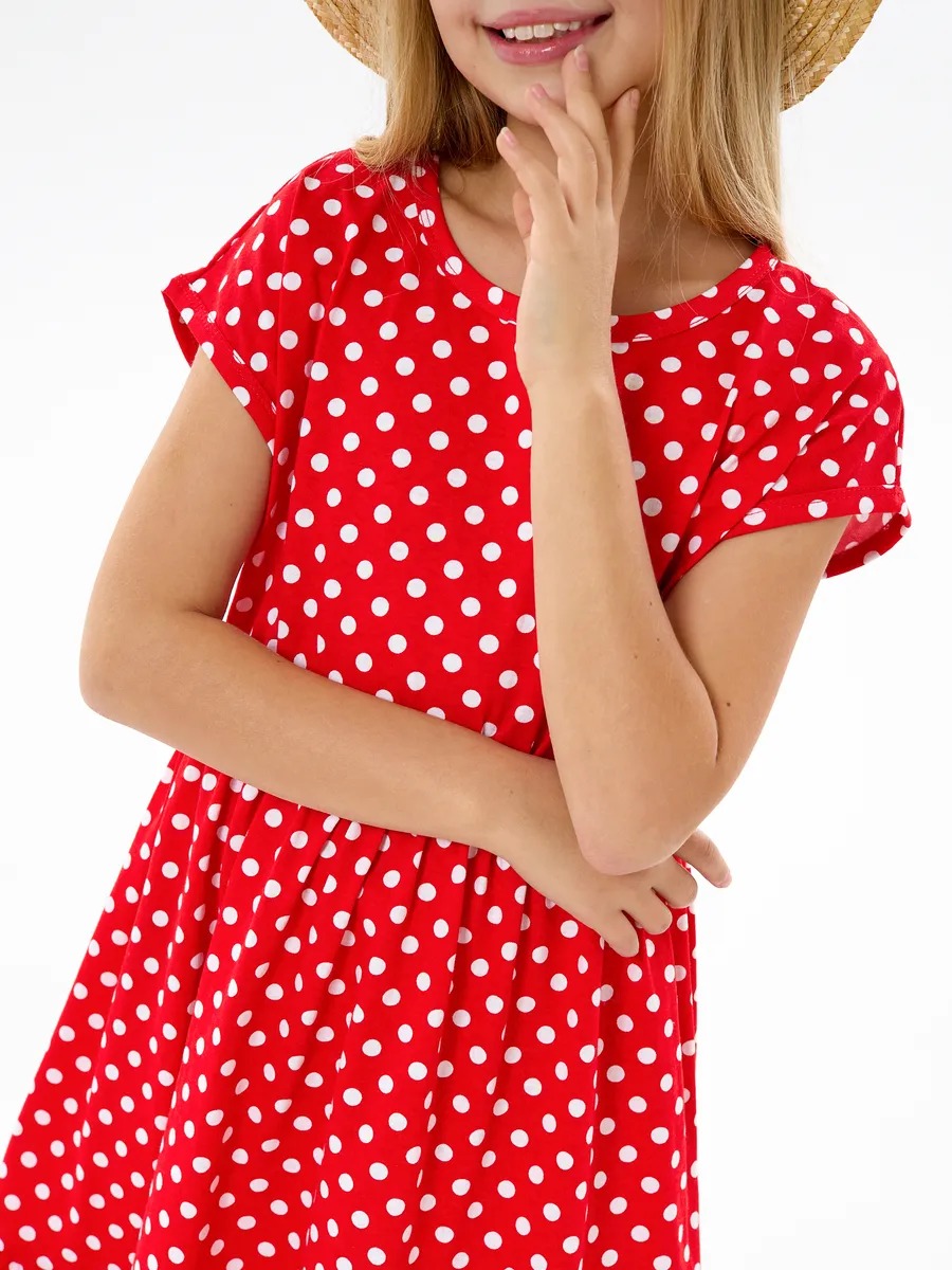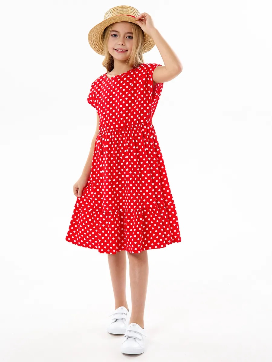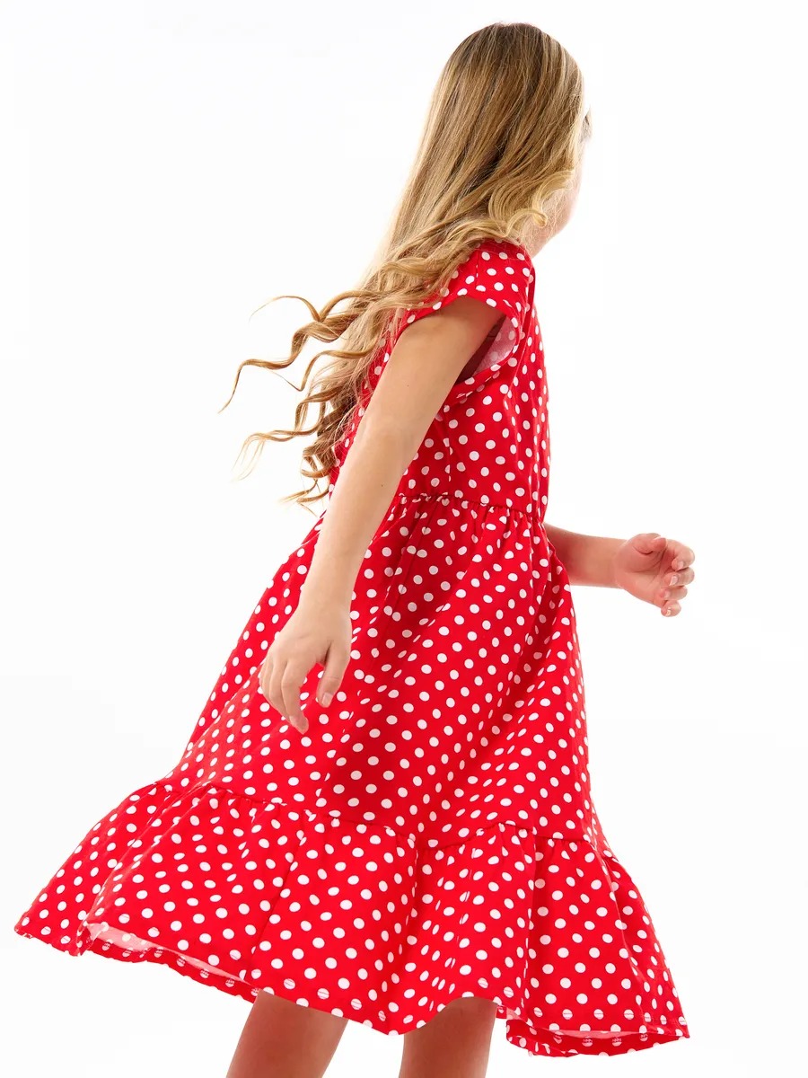 Детское платье "Ласточка" / Белый горошек на красном