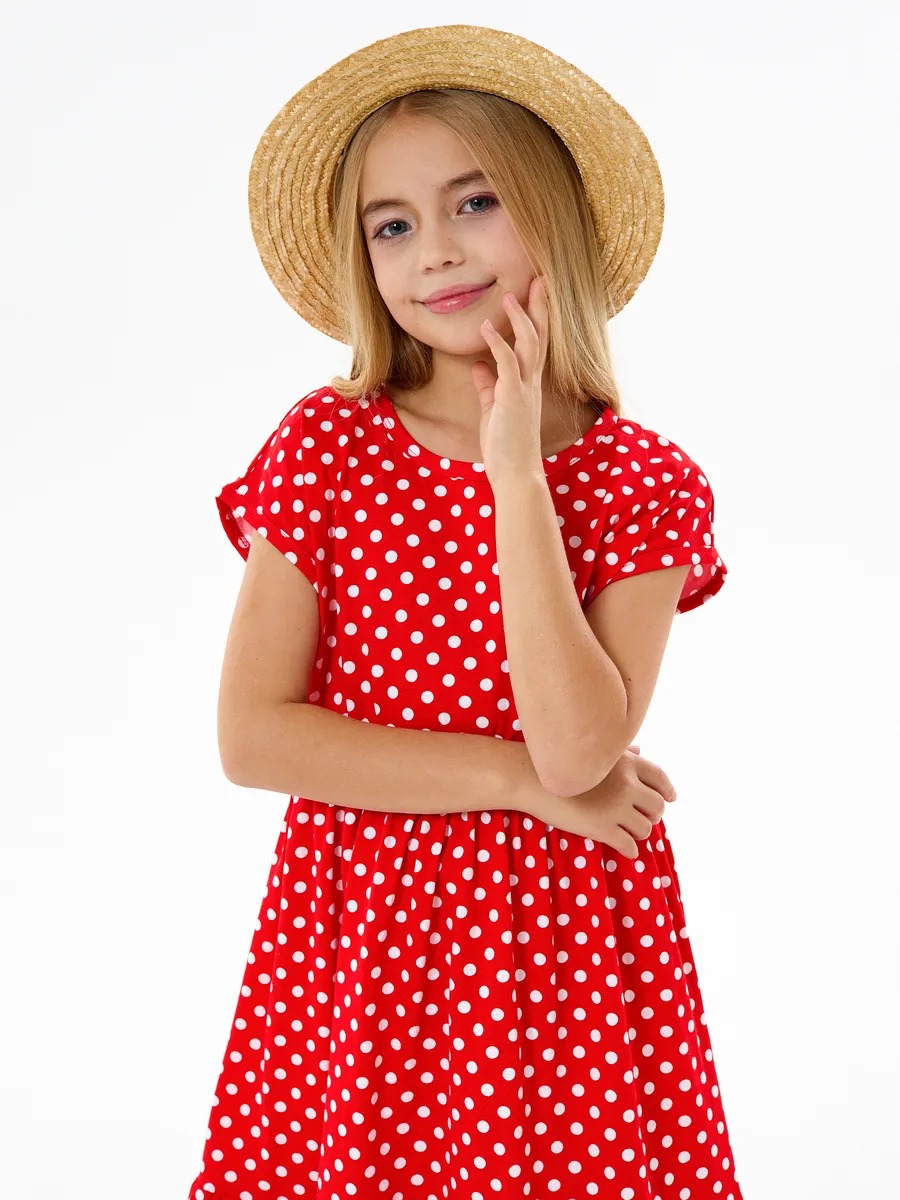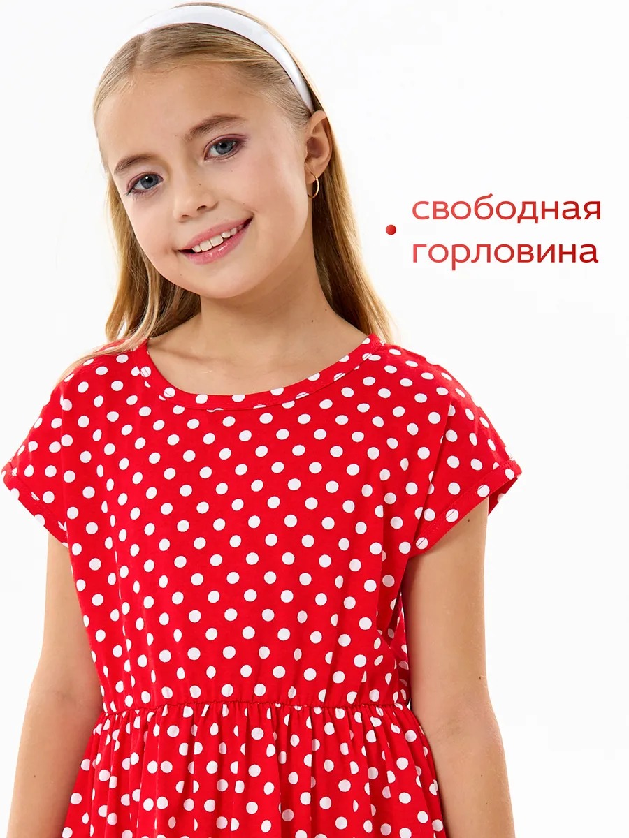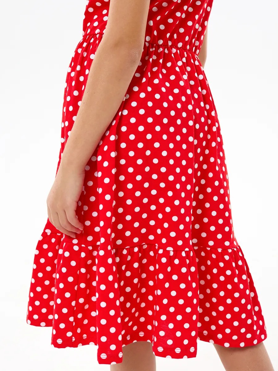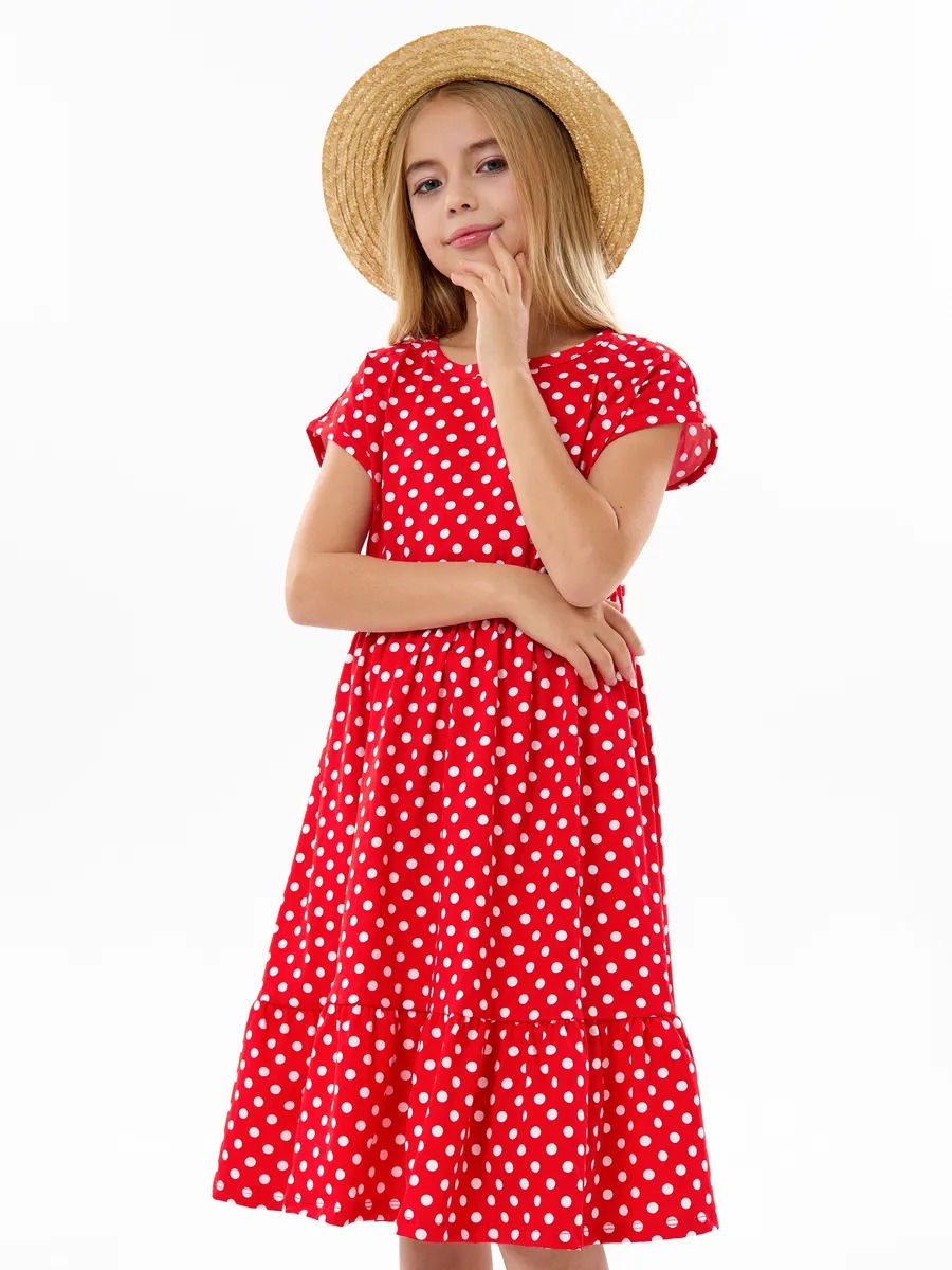 Детское платье "Ласточка" / Белый горошек на красном