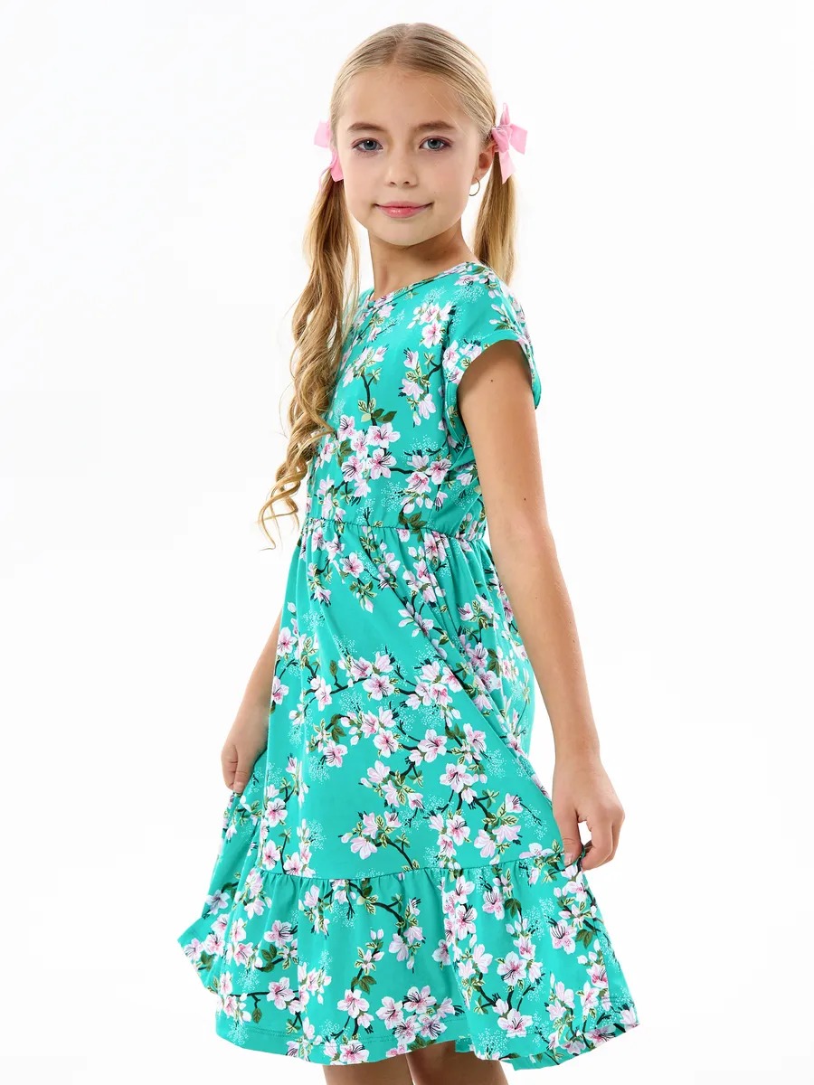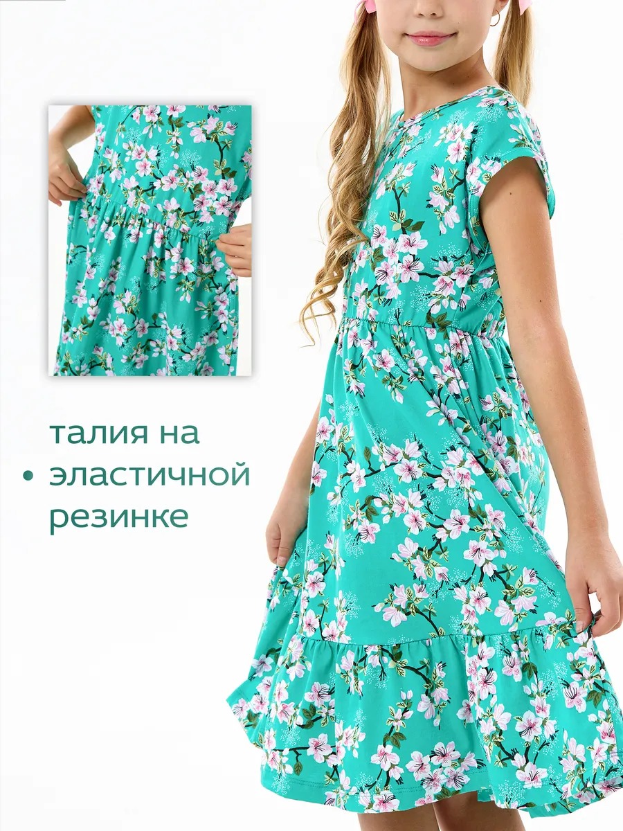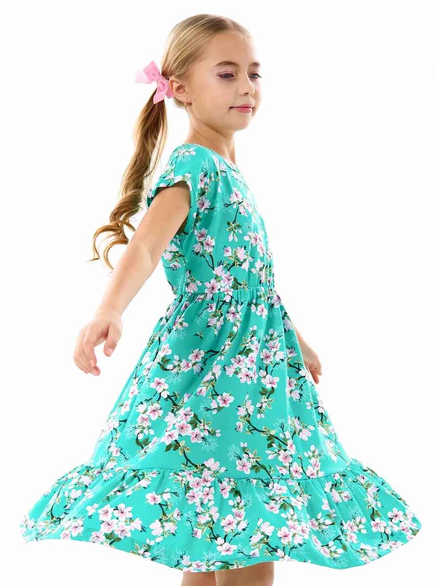 Платье легкое и удобное в носке, отлично подходит на лето для повседневных прогулок в теплую погоду, в детский садик или на праздник. Благодаря яркой расцветке, удобному крою и летящей юбке с оборкой оно выглядит просто и одновременно роскошно. Детское платье для девочки изготавливается из качественного 100% хлопка, будет удобно в носке и устойчивом к многочисленным стиркам. Платье нарядное имеет свободный покрой с завышенной талией на эластичной потайной резиночке, поэтому подходит как для стройных, так и на пухленьких девочек. У платья спущенный цельнокроеный рукав.