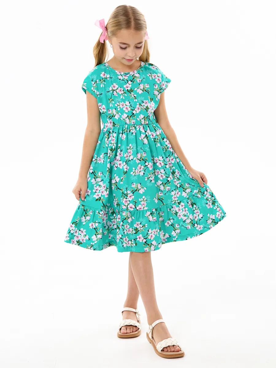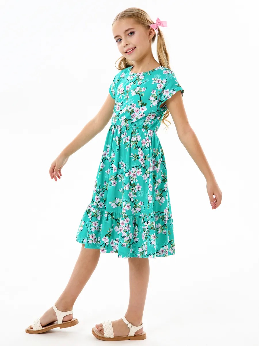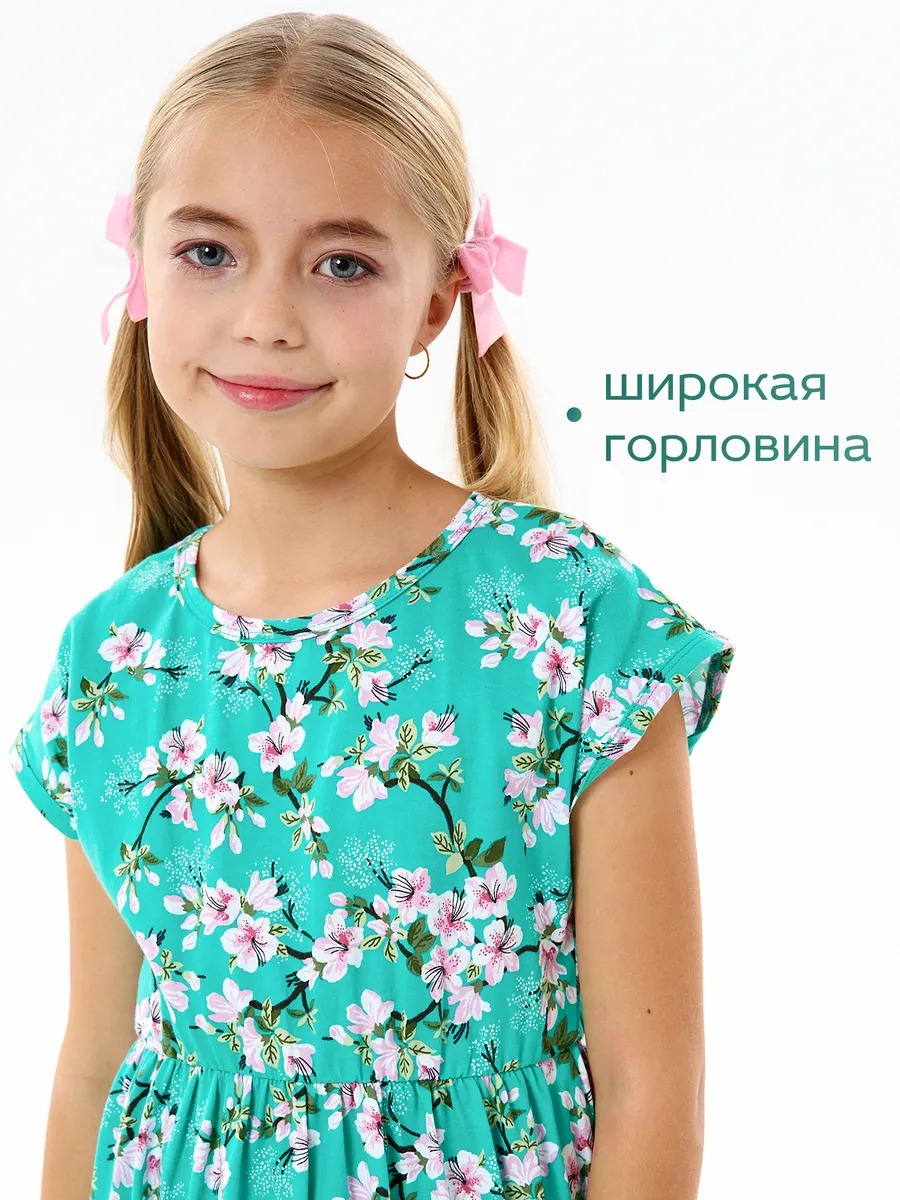 Платье легкое и удобное в носке, отлично подходит на лето для повседневных прогулок в теплую погоду, в детский садик или на праздник. Благодаря яркой расцветке, удобному крою и летящей юбке с оборкой оно выглядит просто и одновременно роскошно. Детское платье для девочки изготавливается из качественного 100% хлопка, будет удобно в носке и устойчивом к многочисленным стиркам. Платье нарядное имеет свободный покрой с завышенной талией на эластичной потайной резиночке, поэтому подходит как для стройных, так и на пухленьких девочек. У платья спущенный цельнокроеный рукав.