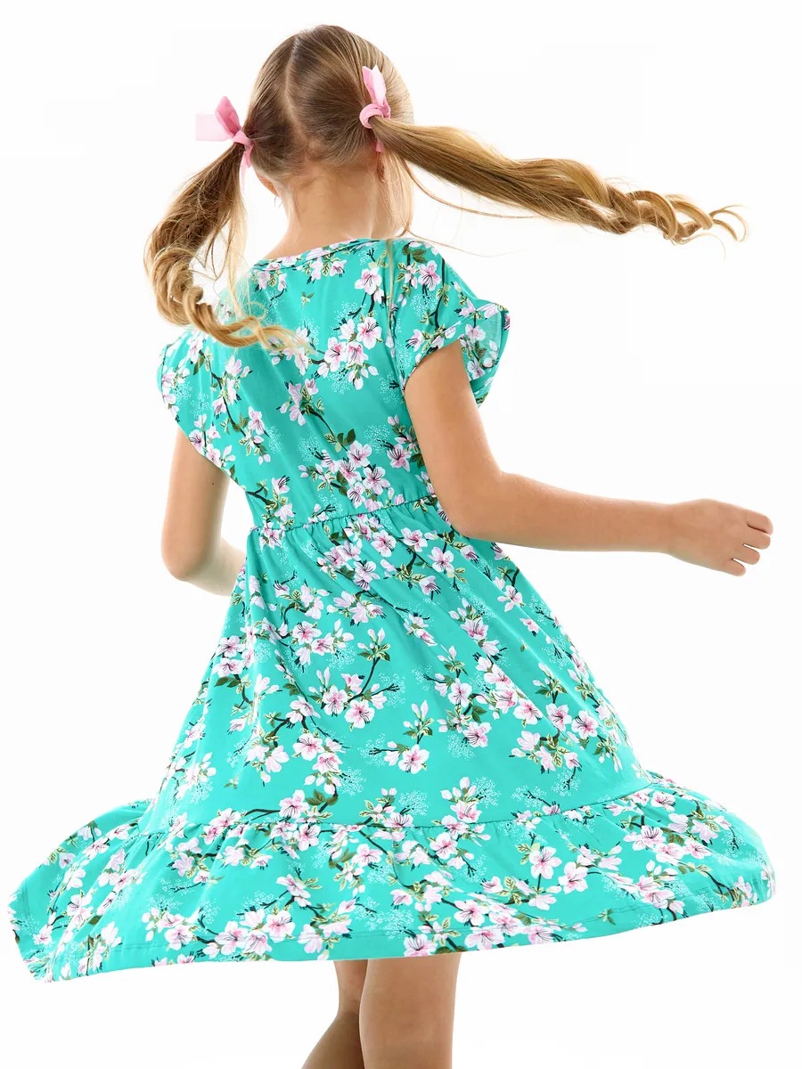 Детское платье "Ласточка" / Цветущий сад на ментоле