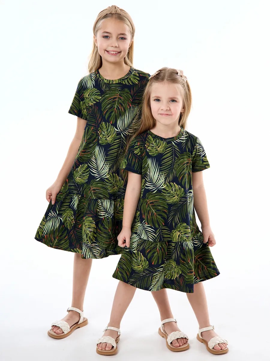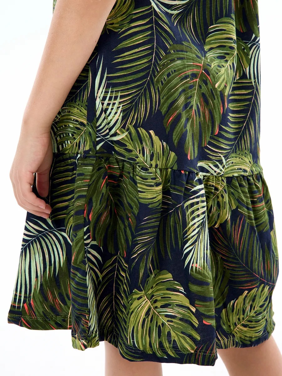 Детское платье "Лето" / Монстера на черном