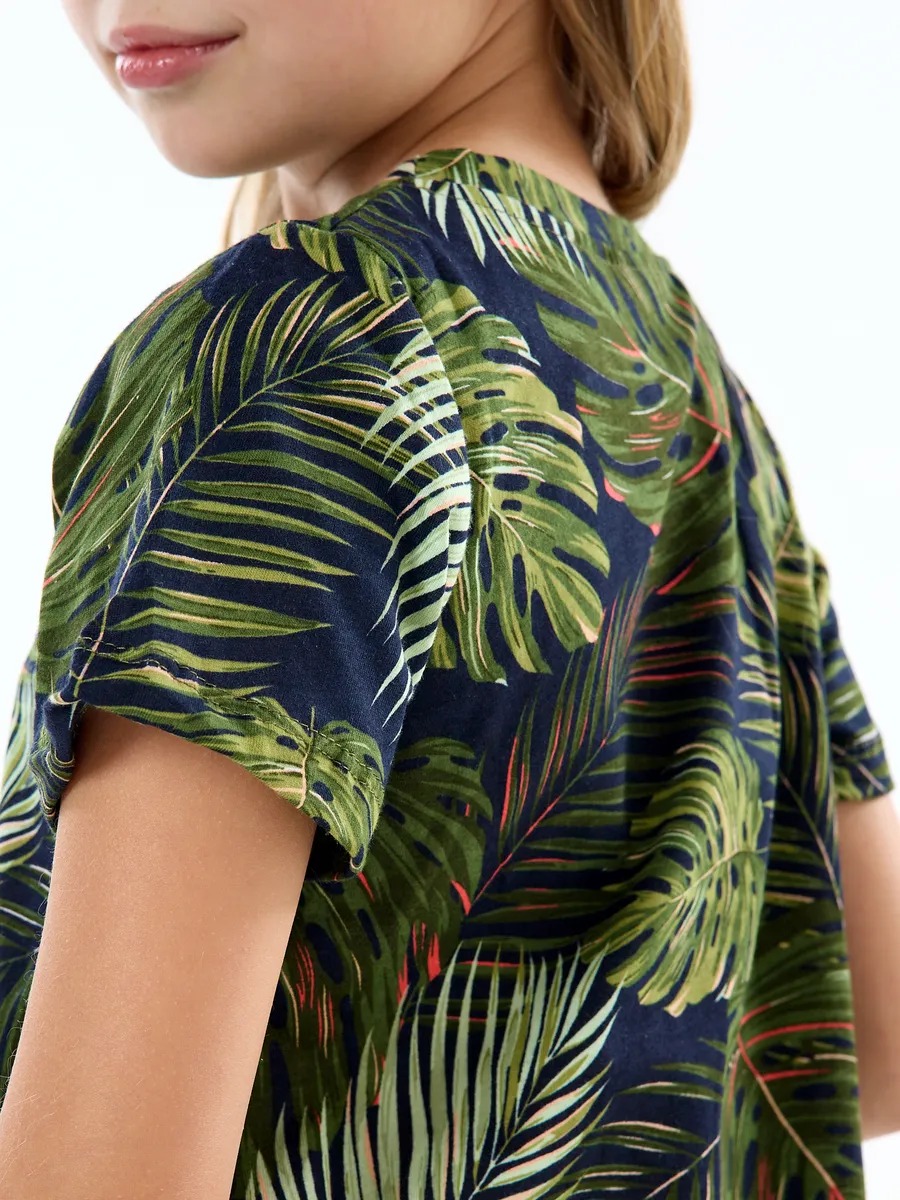 Летнее платье оверсайз для девочек с ярким принтом и коротким рукавом — легкое, модное, милый и женственный наряд на все случаи жизни. Детское хлопковое трикотажное платье в садик с яркими узорами, скроено в виде трапеции с отрезной присборенной юбкой и подойдет ребенку любой комплекции. Ваш ребенок может надевать это стильное платье в цветочек для девочки на прогулки, в детский сад и на любые праздники, оно везде будет отлично смотреться. может надевать это стильное оверсайз платье на прогулки каждый день, в детский сад, для похода в гости или на любые праздники, оно везде будет отлично смотреться, а благодаря интересной расцветке оно становится не марким. Благодаря особенностям кроя, подросторк может носить вещь достаточно долго: сначала как платье, потом как удлиненную тунику с лосинами.