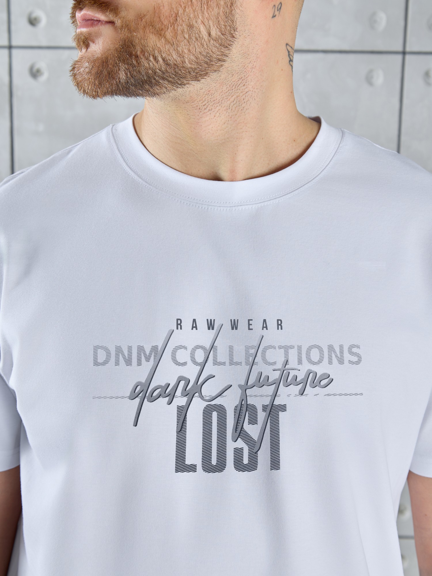 Футболка мужская из гладкокрашеного трикотажного полотна "кулирка с лайкрой" классического покроя со слегка удлиненными плечевыми швами, короткими втачными рукавами, и горловиной овальной формы, обработанной втачной планкой. На детали переда - принт, выполненный в технике шелкографии. По горловине настрочена двойная отделочная строчка. Низ рукавов и изделия обработаны подгибкой.