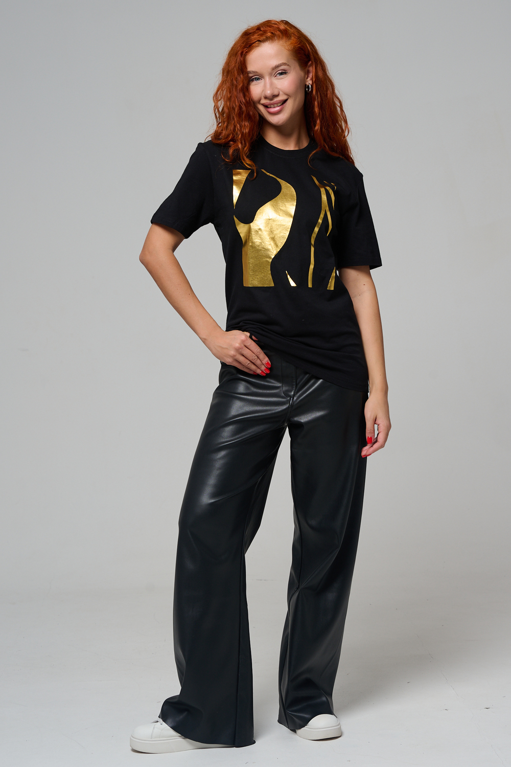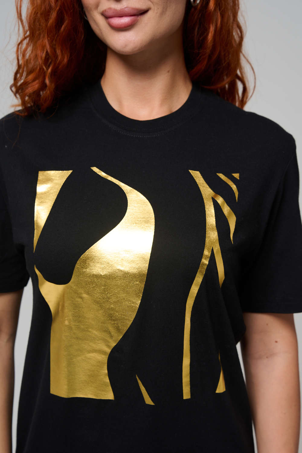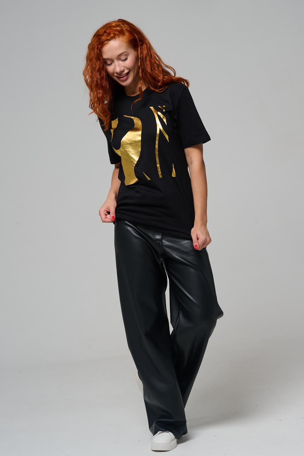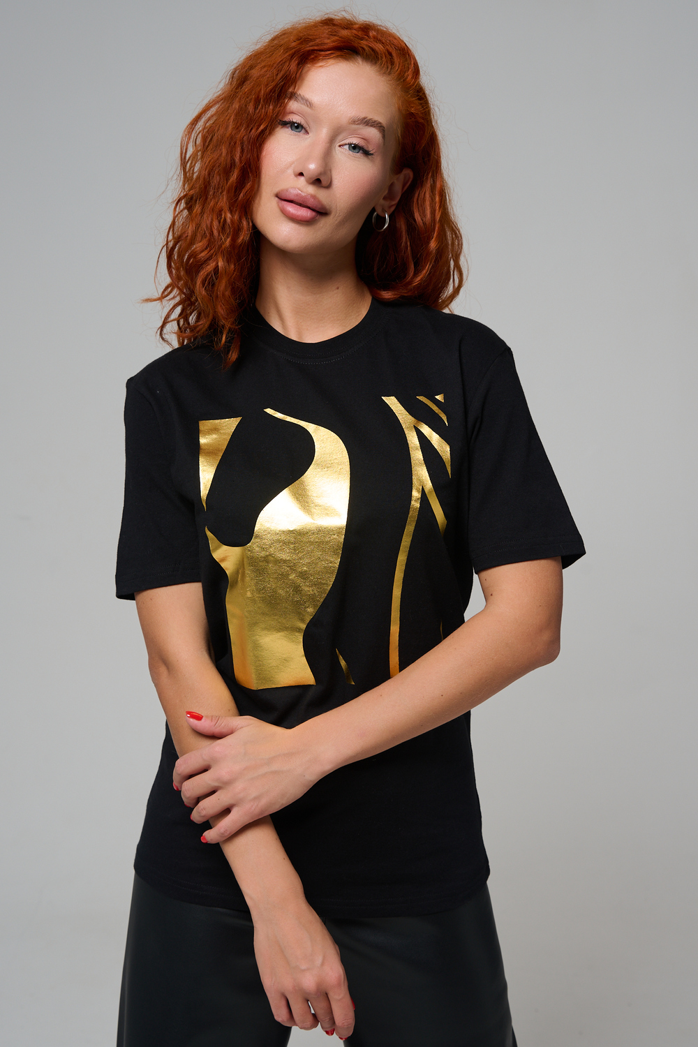 Футболка это идеальный выбор для женщин, предпочитающих комфорт и стиль. Сделанная из 100% хлопка, эта футболка обеспечивает отличную дышащую способность, делая её идеальной для домашнего использования, пляжного отдыха или просто для повседневного ношения. Уникальный принт на передней части добавляет элемент индивидуальности и стиля, делая эту футболку отличным дополнением к вашему гардеробу. Принт фольга.