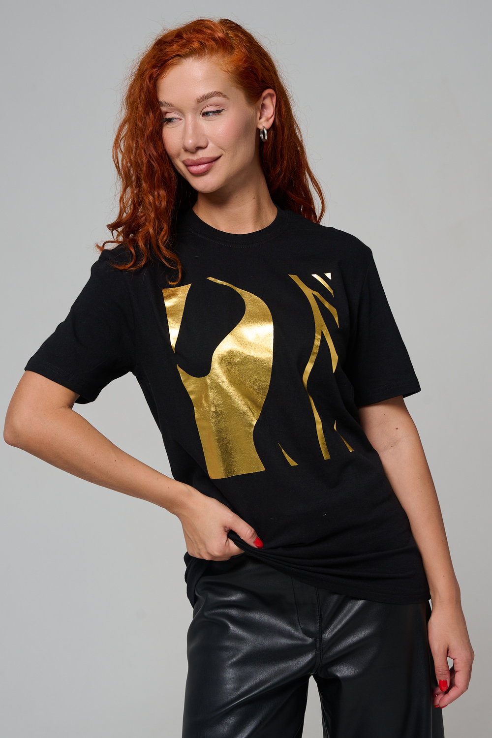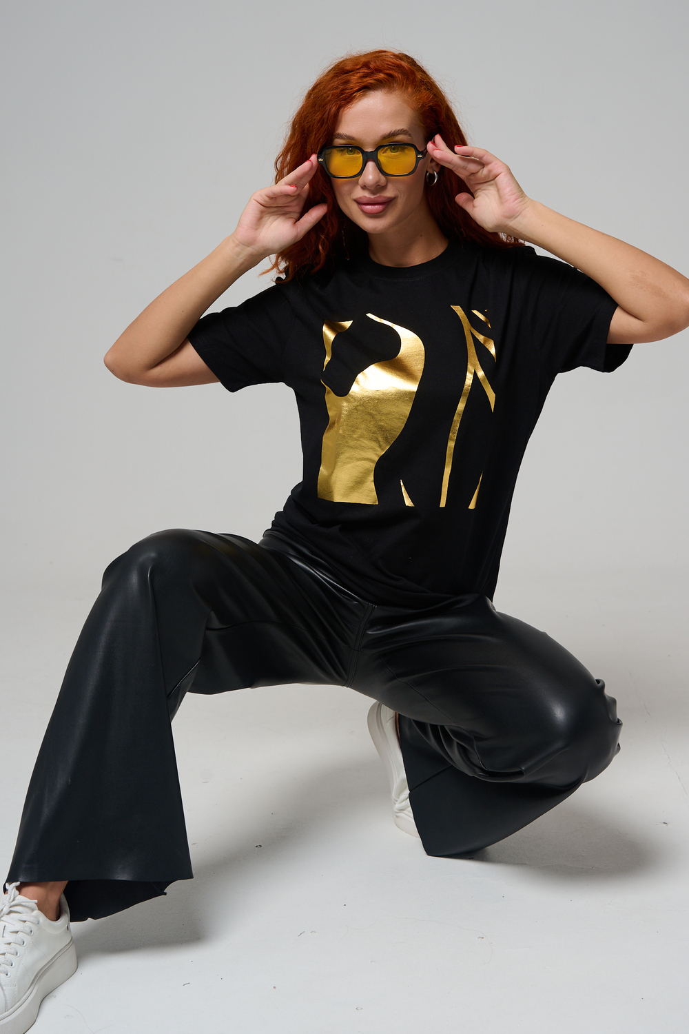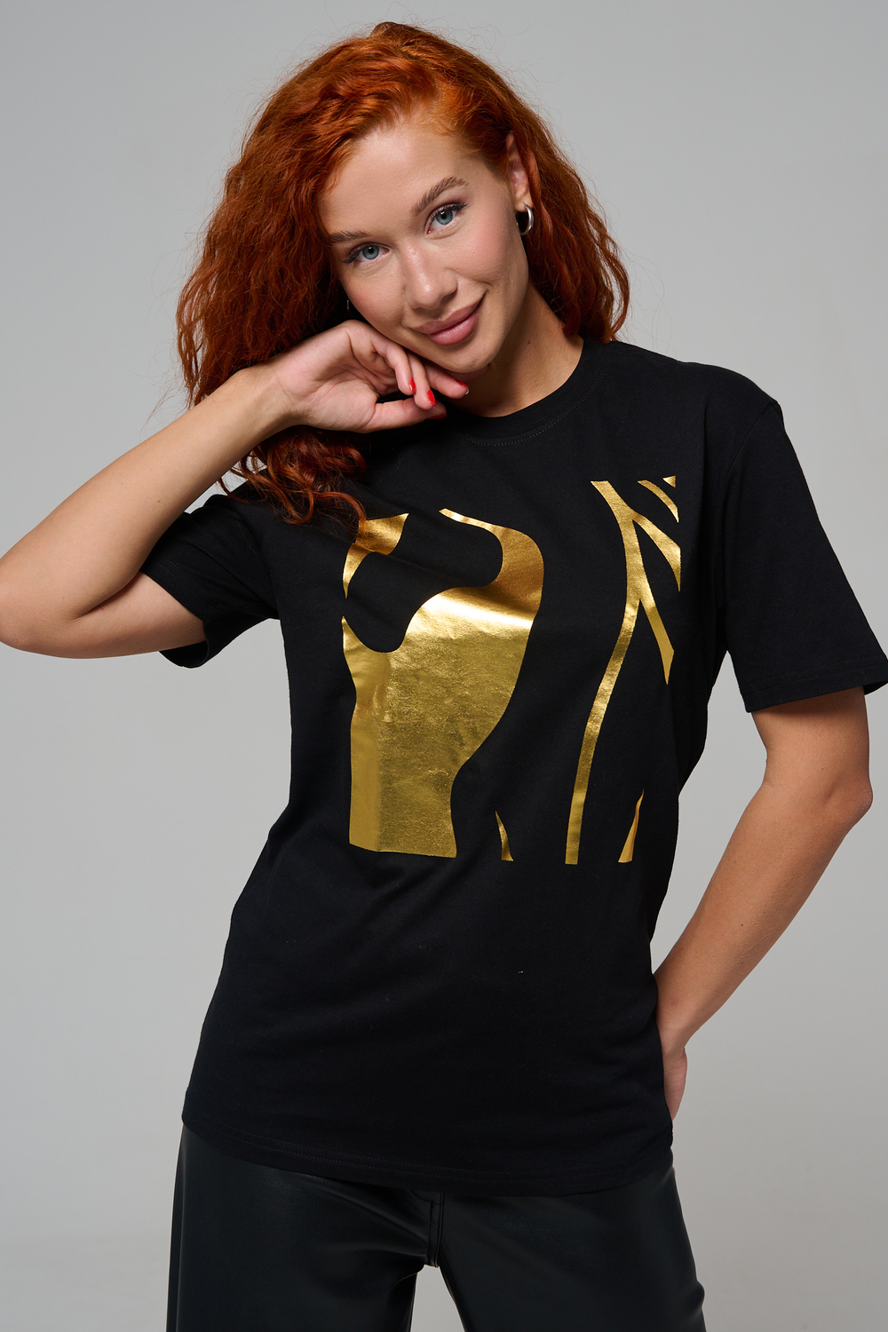 Футболка это идеальный выбор для женщин, предпочитающих комфорт и стиль. Сделанная из 100% хлопка, эта футболка обеспечивает отличную дышащую способность, делая её идеальной для домашнего использования, пляжного отдыха или просто для повседневного ношения. Уникальный принт на передней части добавляет элемент индивидуальности и стиля, делая эту футболку отличным дополнением к вашему гардеробу. Принт фольга.