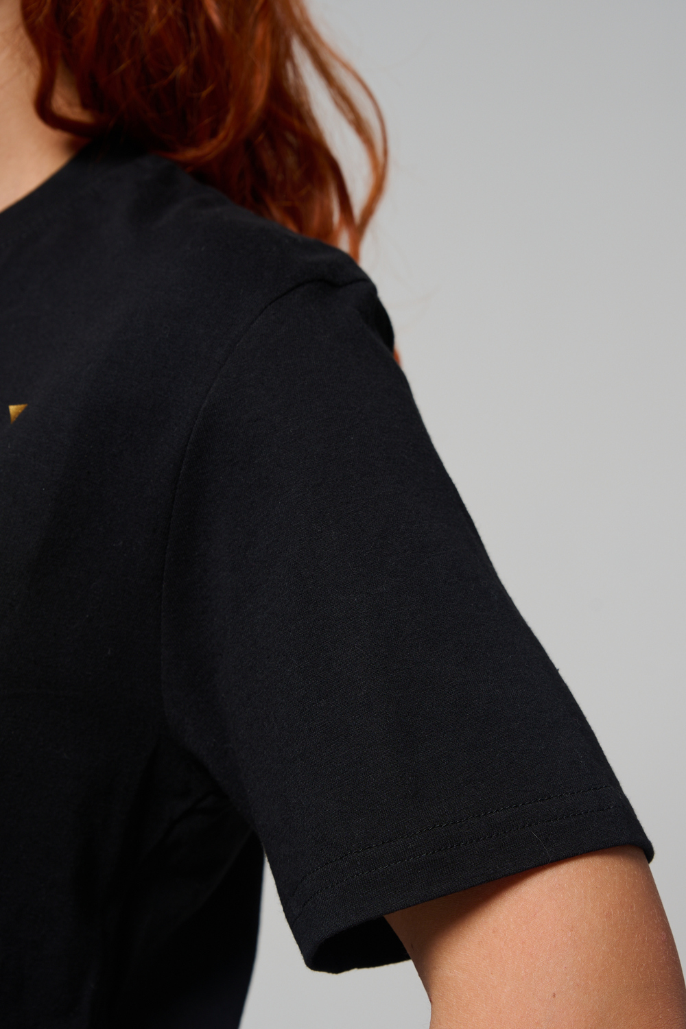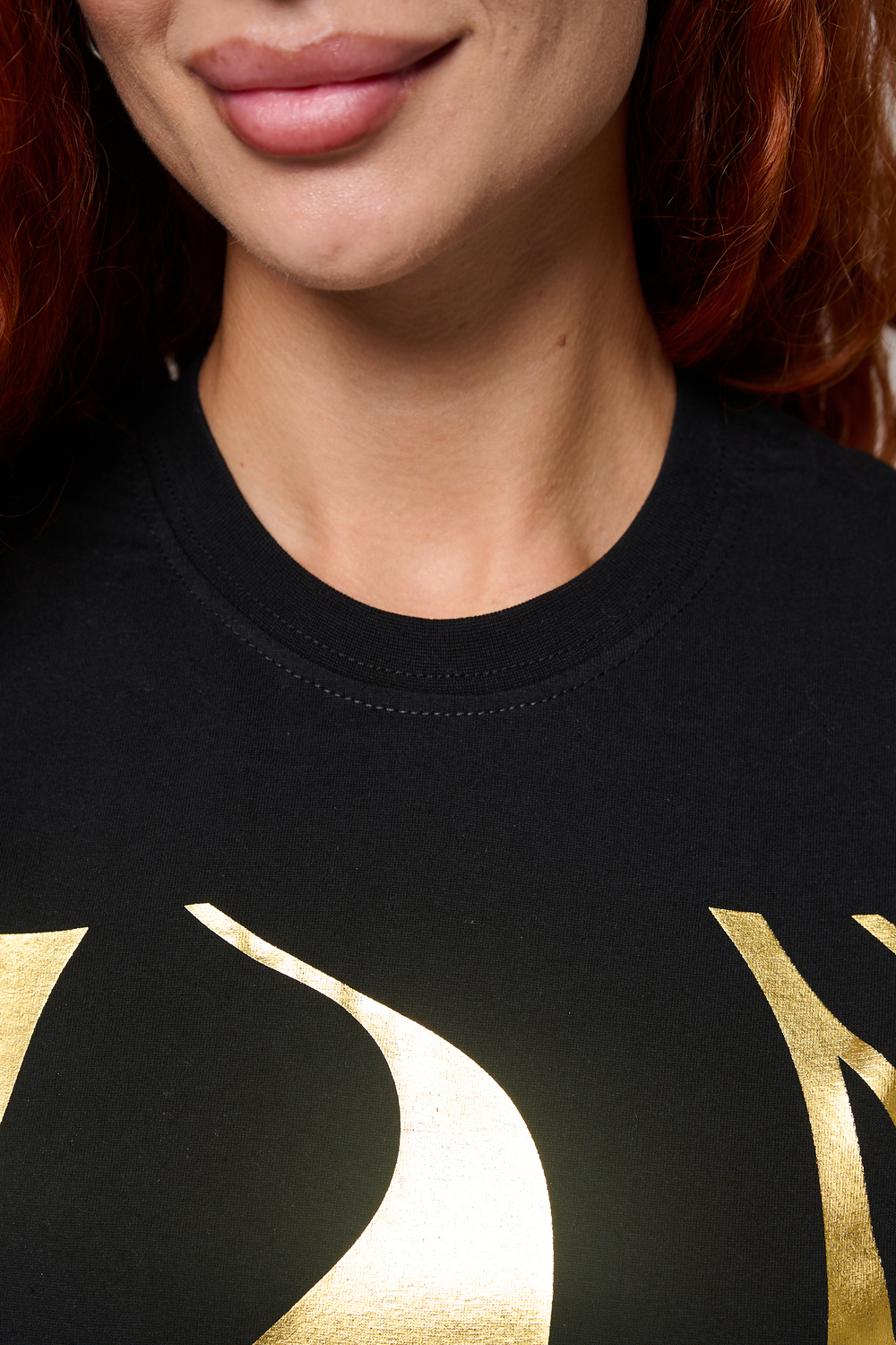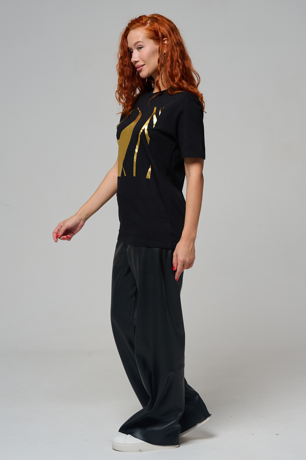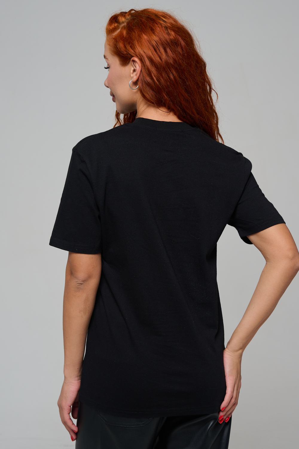 Футболка это идеальный выбор для женщин, предпочитающих комфорт и стиль. Сделанная из 100% хлопка, эта футболка обеспечивает отличную дышащую способность, делая её идеальной для домашнего использования, пляжного отдыха или просто для повседневного ношения. Уникальный принт на передней части добавляет элемент индивидуальности и стиля, делая эту футболку отличным дополнением к вашему гардеробу. Принт фольга.
