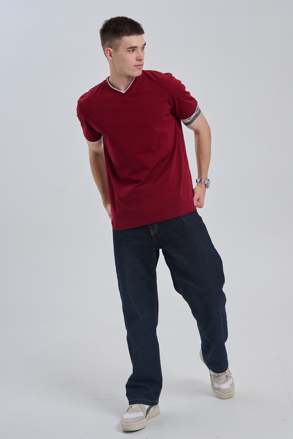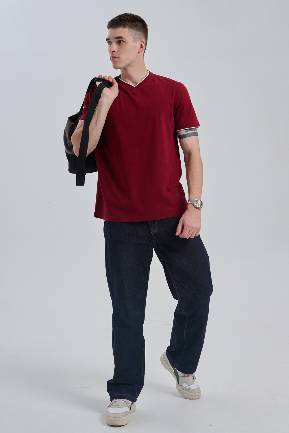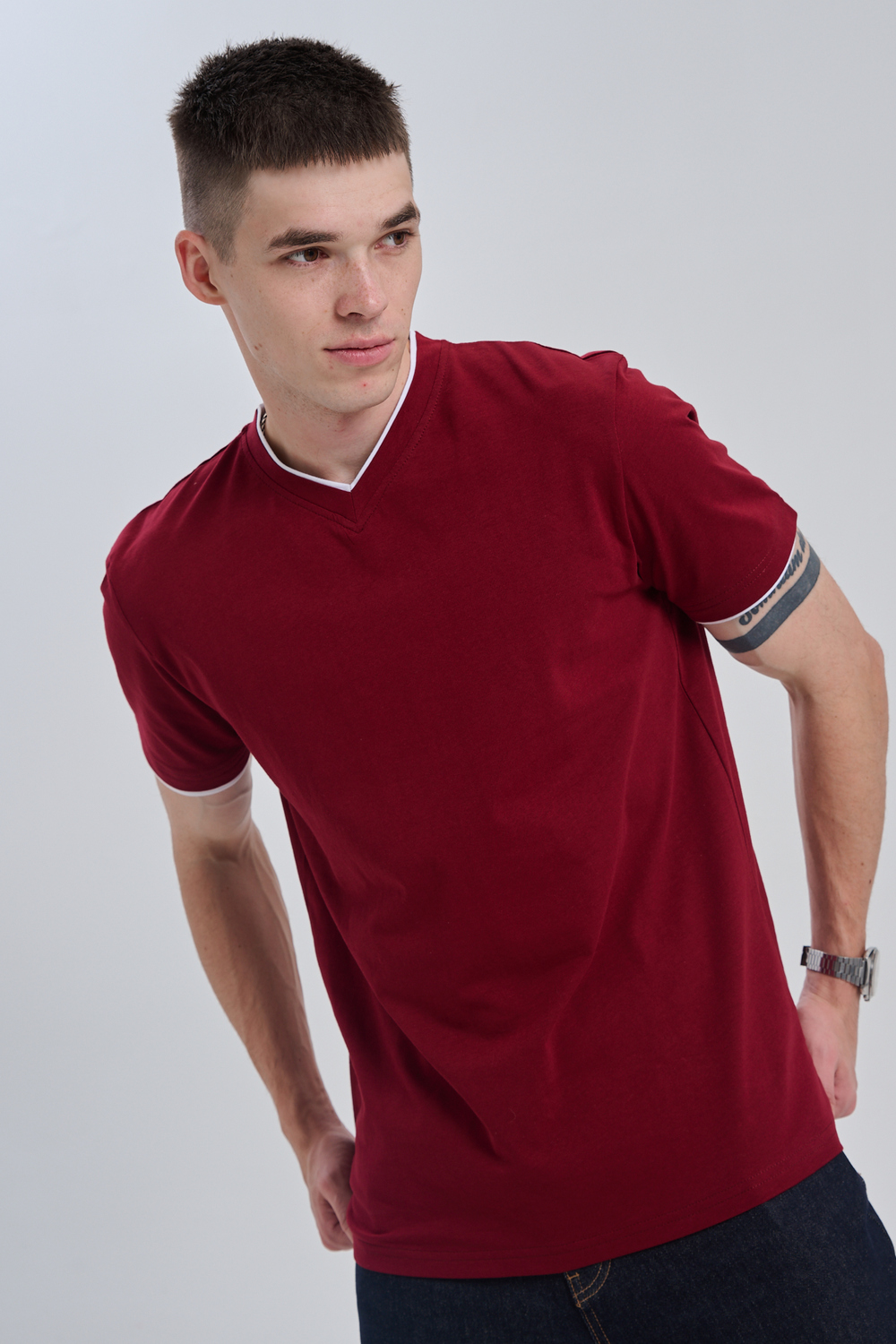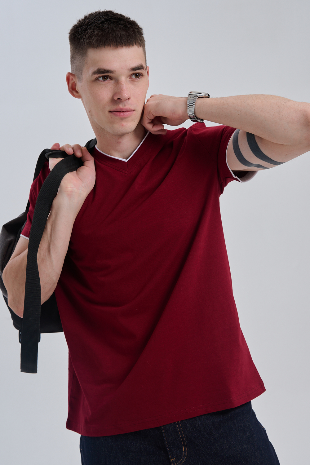 Футболка мужская однотонная с окантовкой из плотного дышащего хлопка. Модель в расслабленном молодежном стиле. Свободный прямой крой база для любого гардероба. Представлены мягкие футболки стандартных размеров, подходят на высокий рост. С усиленным V-Образным вырезом и окантовкой, подойдет для тренировок, офиса, учебы, активного отдыха, туристических поездок, встреч с друзьями и дома.