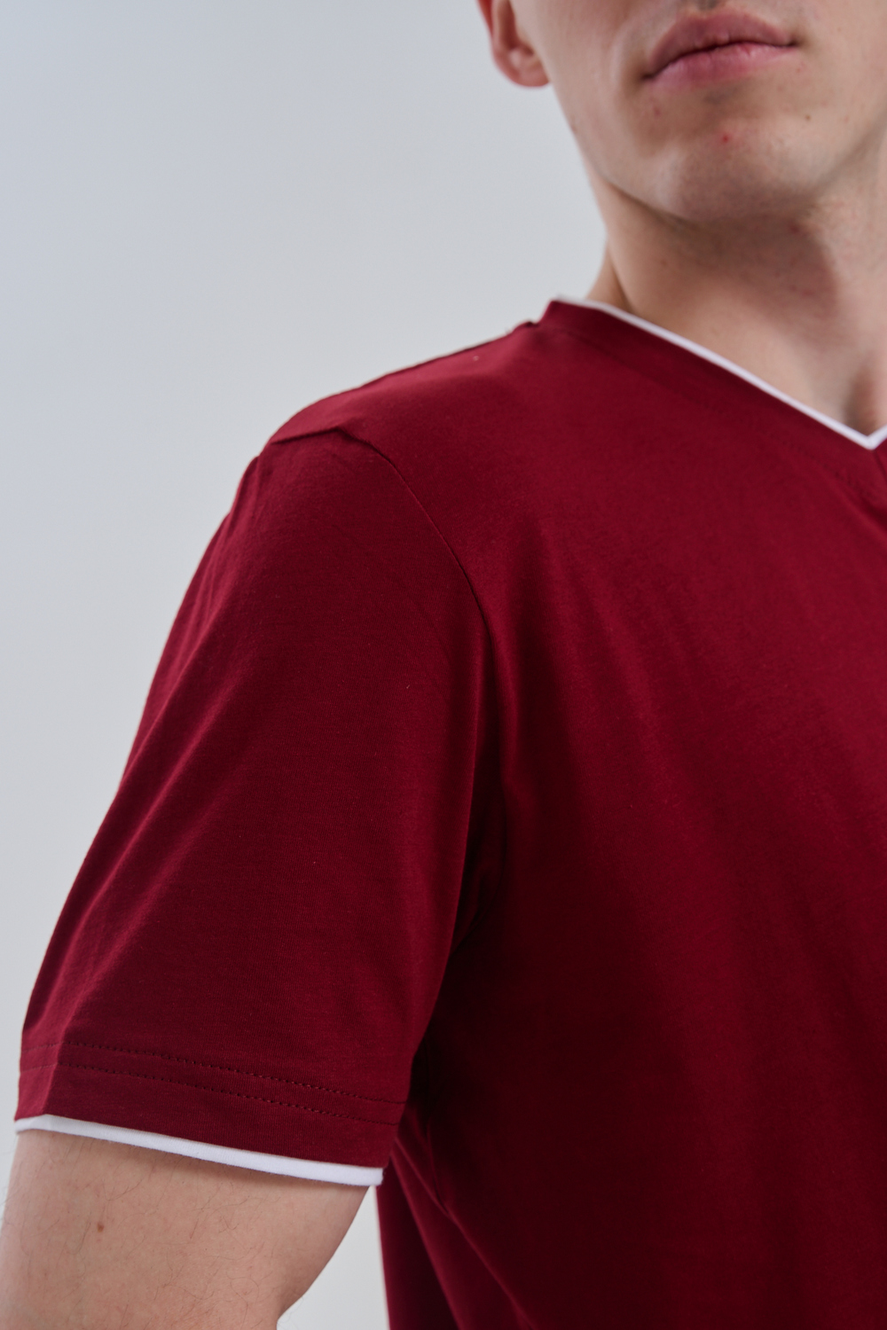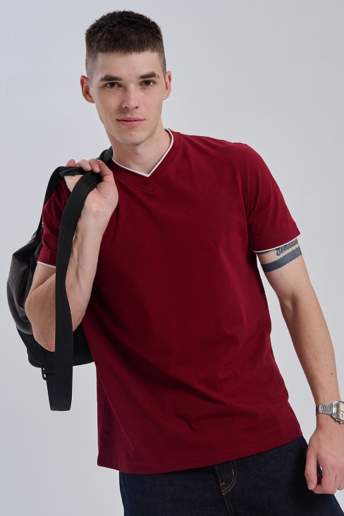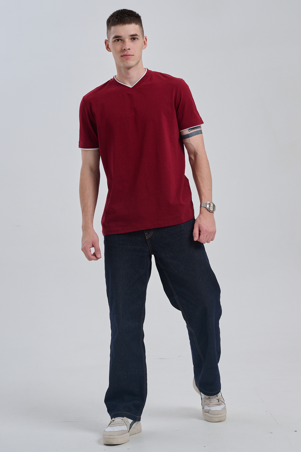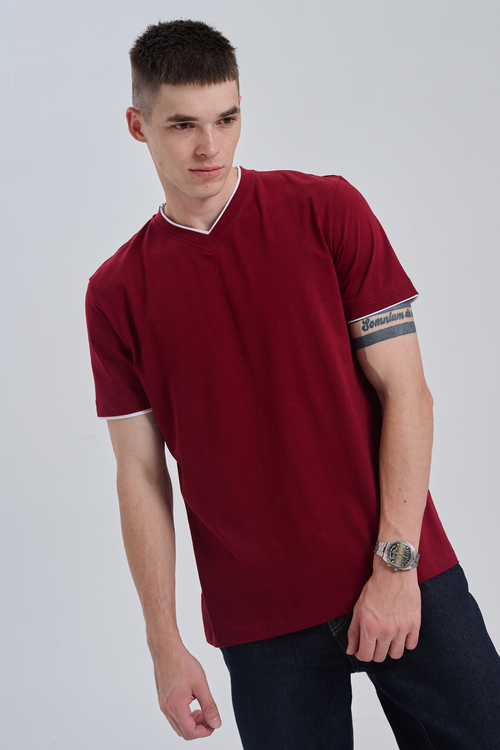Футболка мужская однотонная с окантовкой из плотного дышащего хлопка. Модель в расслабленном молодежном стиле. Свободный прямой крой база для любого гардероба. Представлены мягкие футболки стандартных размеров, подходят на высокий рост. С усиленным V-Образным вырезом и окантовкой, подойдет для тренировок, офиса, учебы, активного отдыха, туристических поездок, встреч с друзьями и дома.