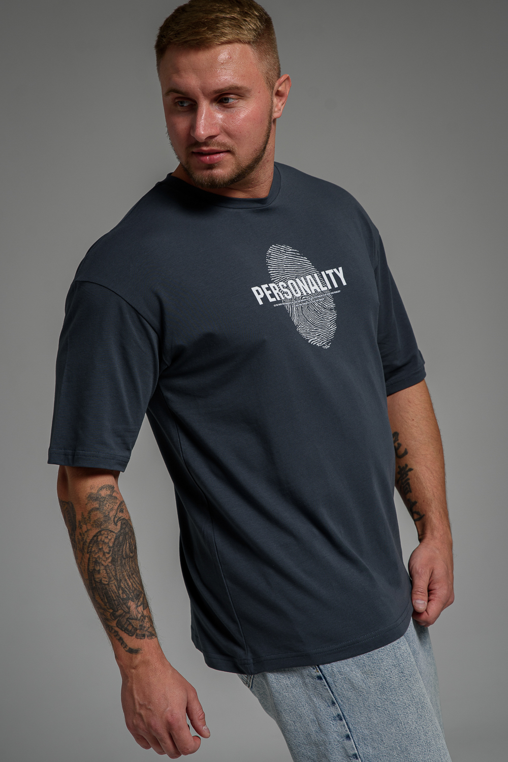 Футболка мужская 8507/1 Отпечаток оверсайз / графит