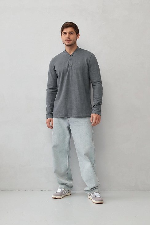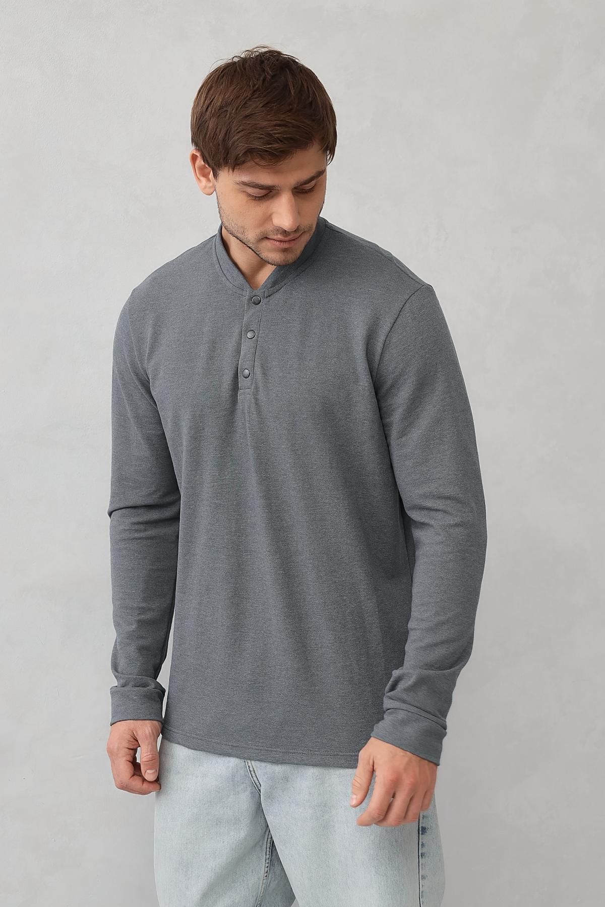 Модель выполнена из ткани пике меланж из 100% хлопка, приятной к телу и комфортной в носке. Лаконичный вырез поло дополнен застёжкой на кнопки, горловина обработана обтачкой из основного полотна, что придаёт изделию аккуратный и завершённый вид. Длинные втачные рукава с притачными манжетами обеспечивают удобную посадку и практичность. Универсальный дизайн позволяет сочетать модель с джинсами, брюками или повседневными образами. Модель полностью соответствует размерной сетке, отлично сидит по фигуре и подчёркивает аккуратный силуэт. Широкий размерный ряд делает изделие удачным выбором для разных типов фигур.