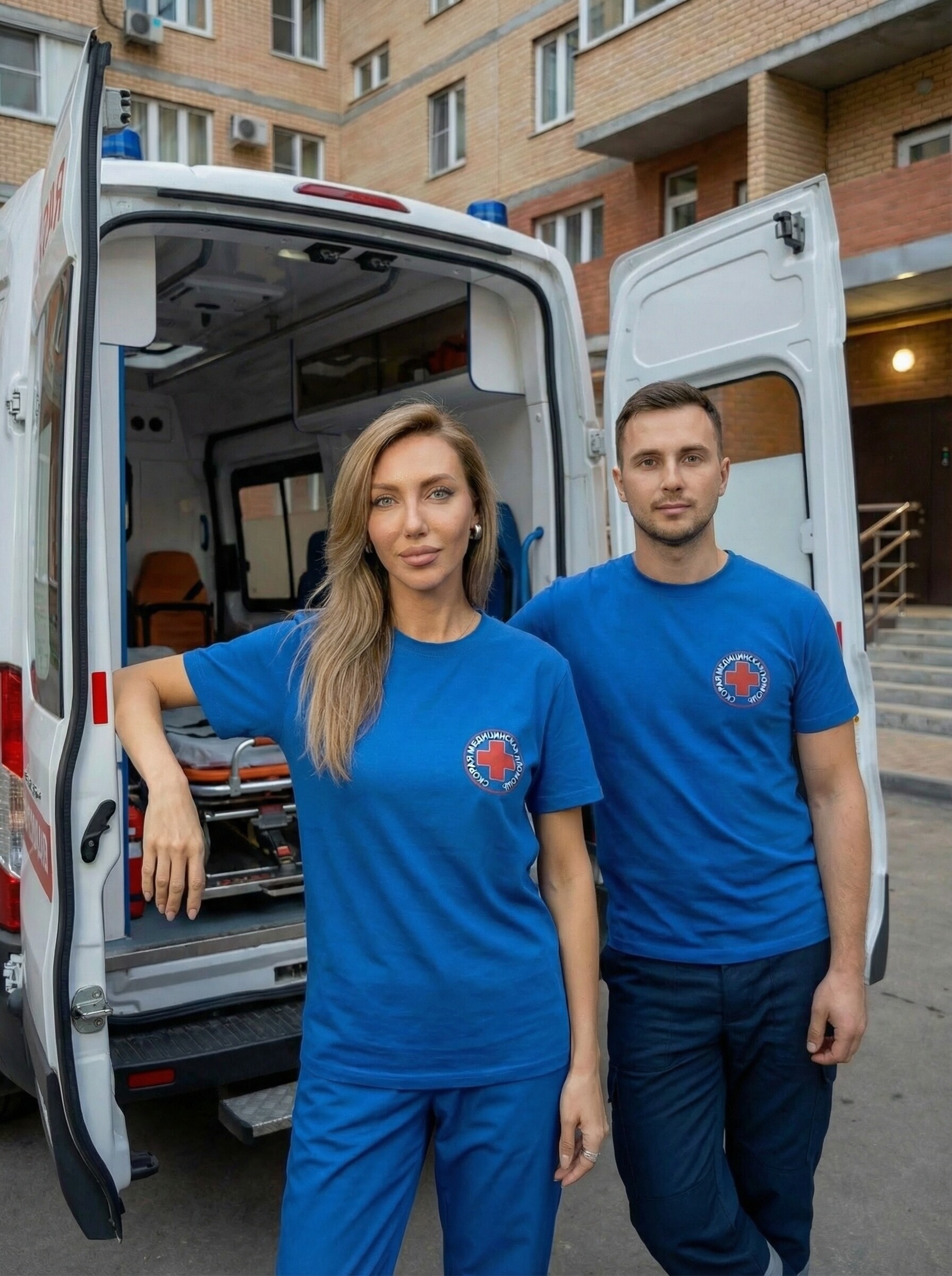 Для сотрудников скорой помощи доступны различные модели футболок с логотипом, которые сочетают практичность и профессиональный дизайн. Однотонные футболки с короткими рукавами, с логотипами на груди и спине, имеют несколько расцветок и широкий размерный ряд.