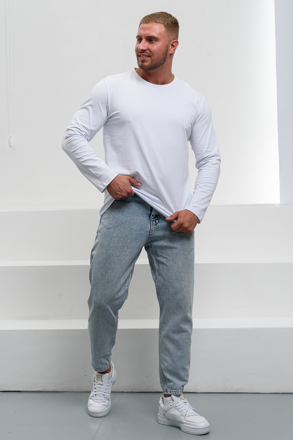 Лонгслив снова в моде и прочно обосновался в базовом гардеробе современного человека. Удобная трикотажная кофта представляет собой футболку с длинным рукавом, которую можно использовать как самостоятельный элемент, так и носить под пиджак, толстовку или рубашку. Лонгслив выполнен из высокоплотного хлопкового трикотажа и является невероятно комфортным и удобным. Футболка с длинными рукавами имеет прямой базовый крой и классическую линию плеча. Лонгслив - это неформальный стиль, когда на футболку можно надеть клетчатую рубашку и сочетать с кедами и джинсами. За счет натуральной ткани лонгслив можно носить в качестве домашней одежды или нательного белья, одежды для сна, тренировочной спортивной одежды и военной экипировки. Если вы хотите силуэт оверсайз нужно взять на размер или два больше, ориентируйтесь по таблице замеров.