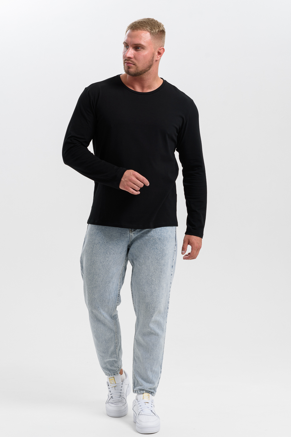 Лонгслив снова в моде и прочно обосновался в базовом гардеробе современного человека. Удобная трикотажная кофта представляет собой футболку с длинным рукавом, которую можно использовать как самостоятельный элемент, так и носить под пиджак, толстовку или рубашку. Лонгслив выполнен из высокоплотного хлопкового трикотажа и является невероятно комфортным и удобным. Футболка с длинными рукавами имеет прямой базовый крой и классическую линию плеча. Лонгслив - это неформальный стиль, когда на футболку можно надеть клетчатую рубашку и сочетать с кедами и джинсами. За счет натуральной ткани лонгслив можно носить в качестве домашней одежды или нательного белья, одежды для сна, тренировочной спортивной одежды и военной экипировки. Если вы хотите силуэт оверсайз нужно взять на размер или два больше, ориентируйтесь по таблице замеров.