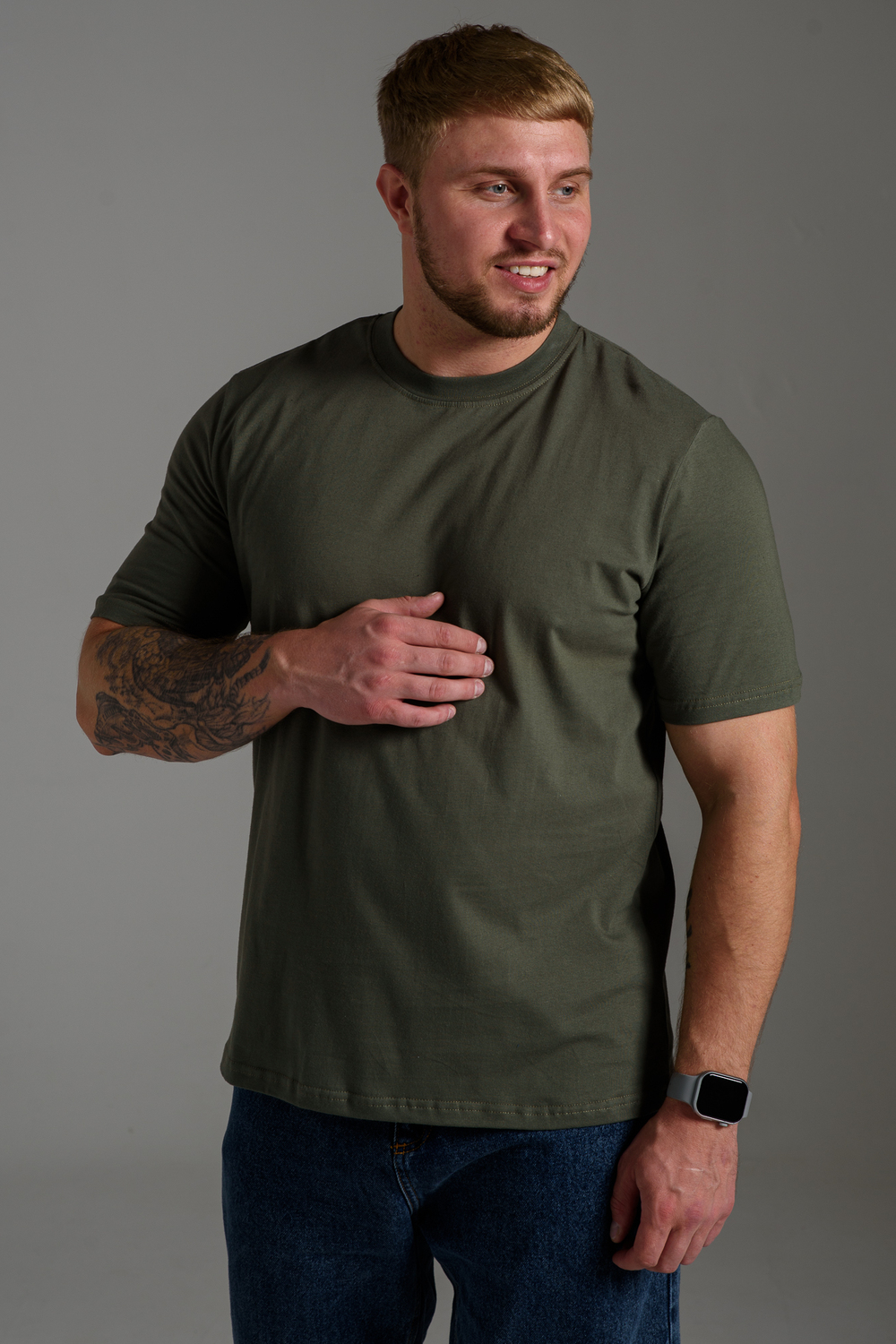 Классическая мужская футболка однотонного цвета. Базовая свободная трикотажная футболка из 100% хлопка - это стильная вещь, которая прекрасно подойдет для всех случаев: отдыха, активных тренировок, прогулки или офиса. Благодаря своему классическому дизайну, она легко сочетается с любой частью гардероба, а ее удлиненная форма и круглый вырез горловины придают удобство и стиль. Производство Узбекистан. Плотность ткани 150-160гр. Допускается небольшое различие в цвете от представленного на фото.