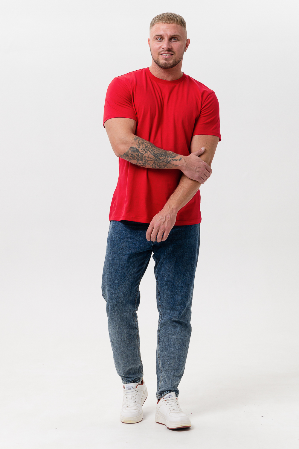 Классическая мужская футболка однотонного цвета. Базовая свободная трикотажная футболка из 100% хлопка - это стильная вещь, которая прекрасно подойдет для всех случаев: отдыха, активных тренировок, прогулки или офиса. Благодаря своему классическому дизайну, она легко сочетается с любой частью гардероба, а ее удлиненная форма и круглый вырез горловины придают удобство и стиль. Производство Узбекистан. Плотность ткани 150-160гр. Допускается небольшое различие в цвете от представленного на фото.
