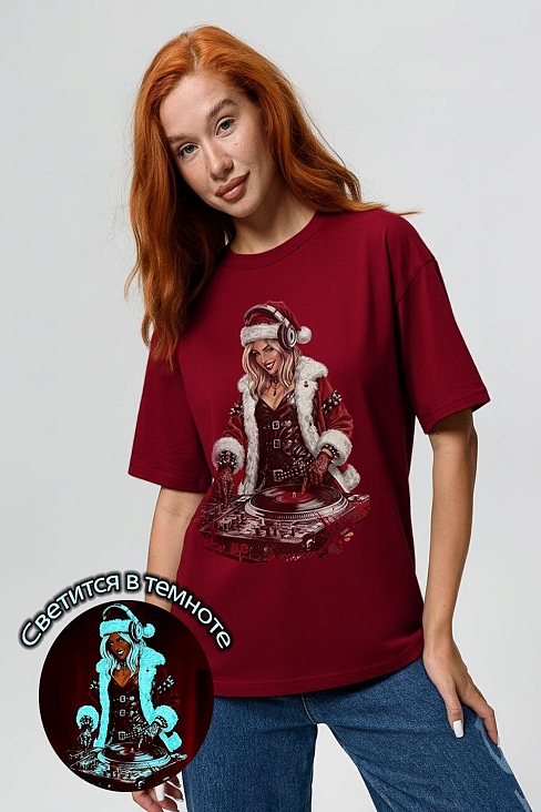 Футболка унисекс 8585 / бордовый+диско снегурочка