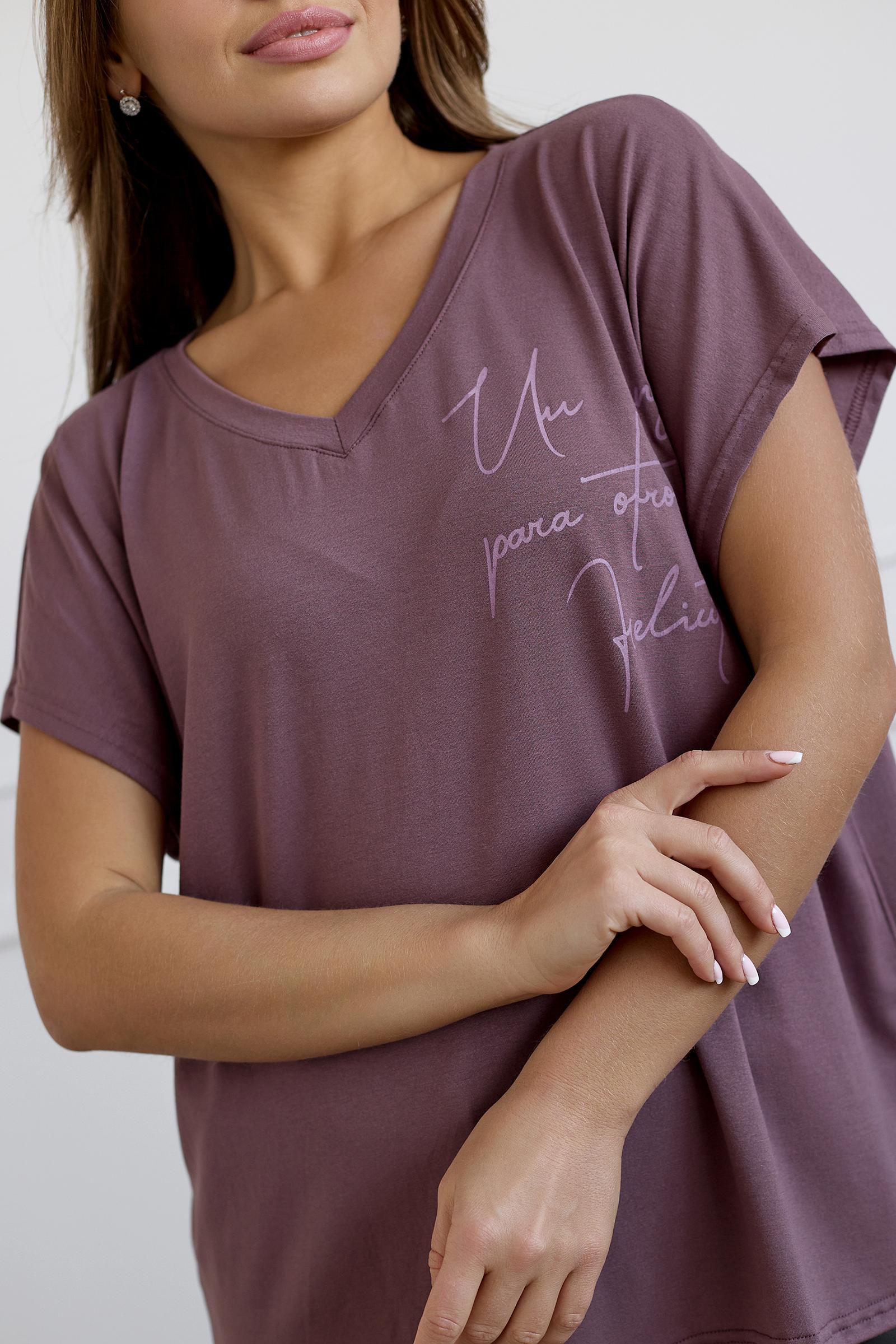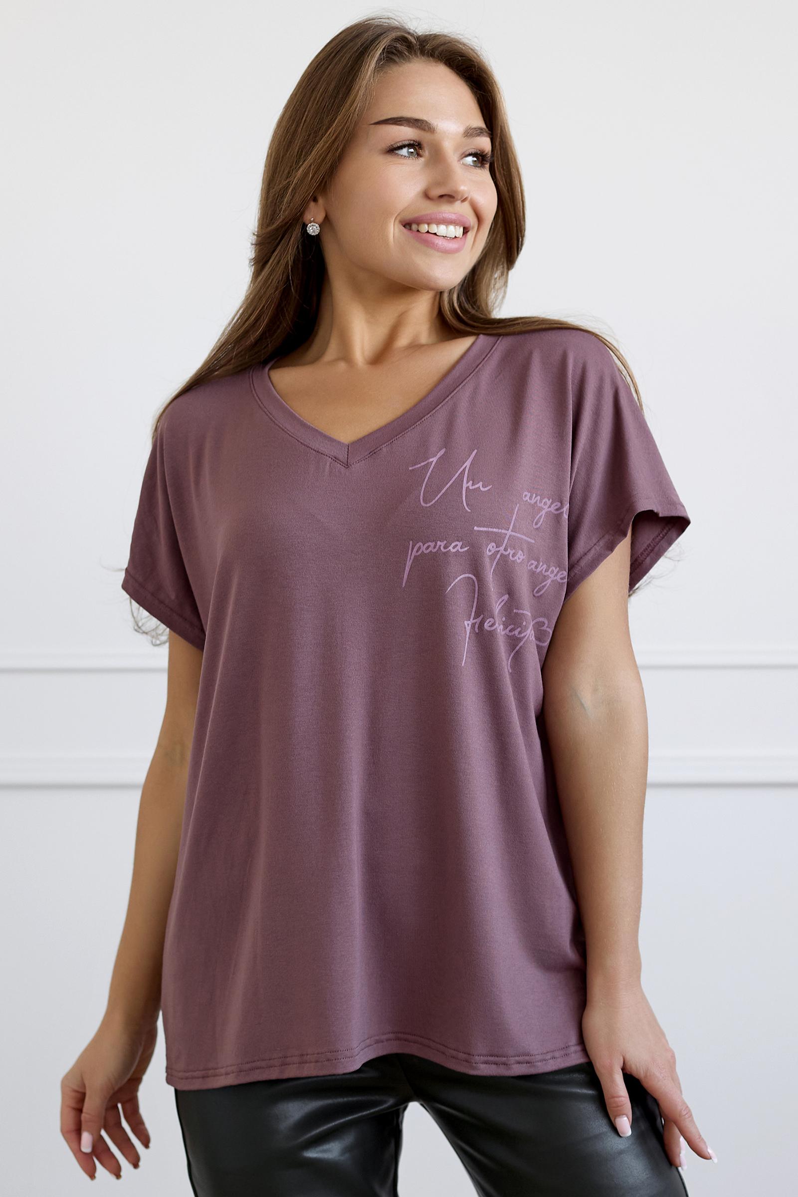 Женская футболка для милых девушек. Удобная и самая любимая вещь каждой девушки – простая и легкая футболка Бэтти. В ней Вы будете чувствовать себя комфортно. Приятная к телу ткань, воротничок мысиком, удобная длина, короткий рукав – вот детали идеальной футболки. Красивый, стильный принт на футболке придает особую нотку привлекательности. Футболку можно сочетать как со спортивным, так и деловым стилем одежды.