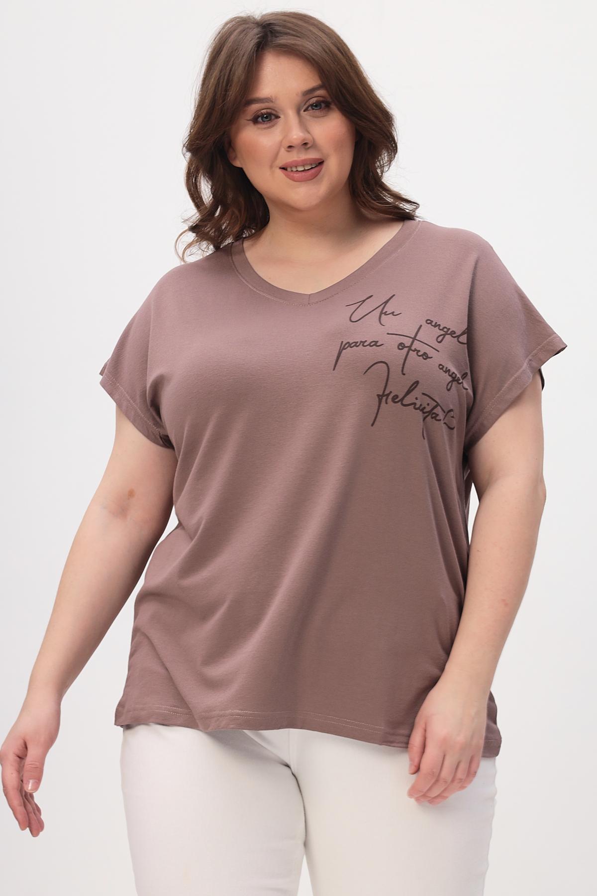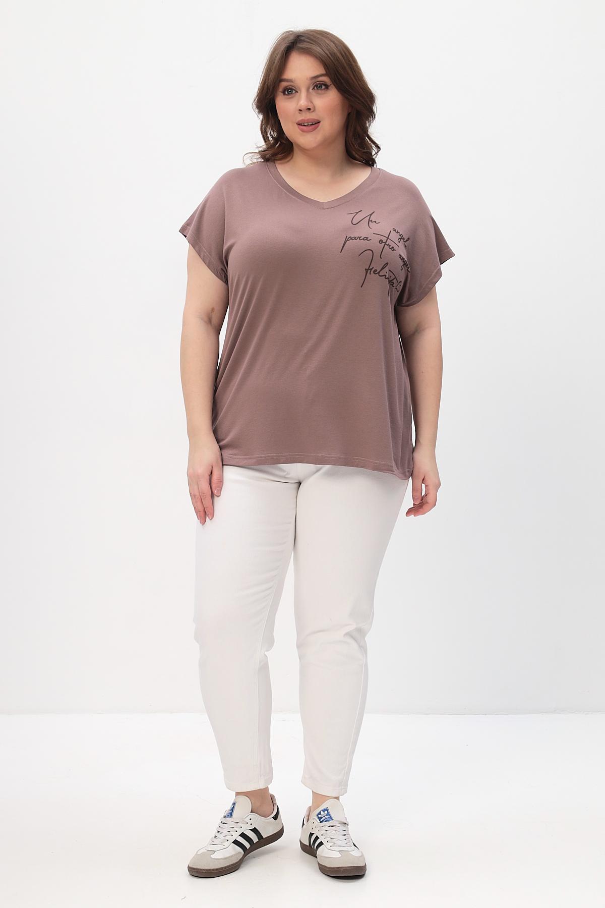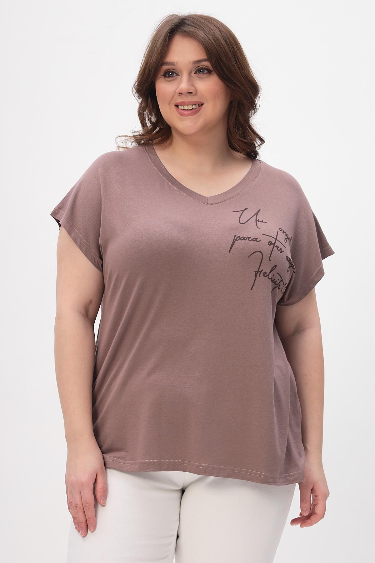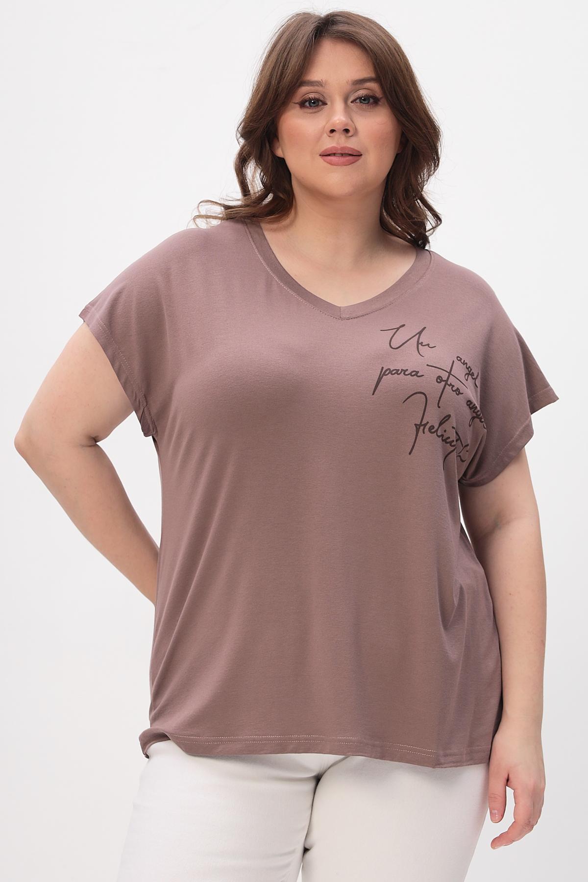 Женская футболка для милых девушек. Удобная и самая любимая вещь каждой девушки – простая и легкая футболка Бэтти. В ней Вы будете чувствовать себя комфортно. Приятная к телу ткань, воротничок мысиком, удобная длина, короткий рукав – вот детали идеальной футболки. Красивый, стильный принт на футболке придает особую нотку привлекательности. Футболку можно сочетать как со спортивным, так и деловым стилем одежды.