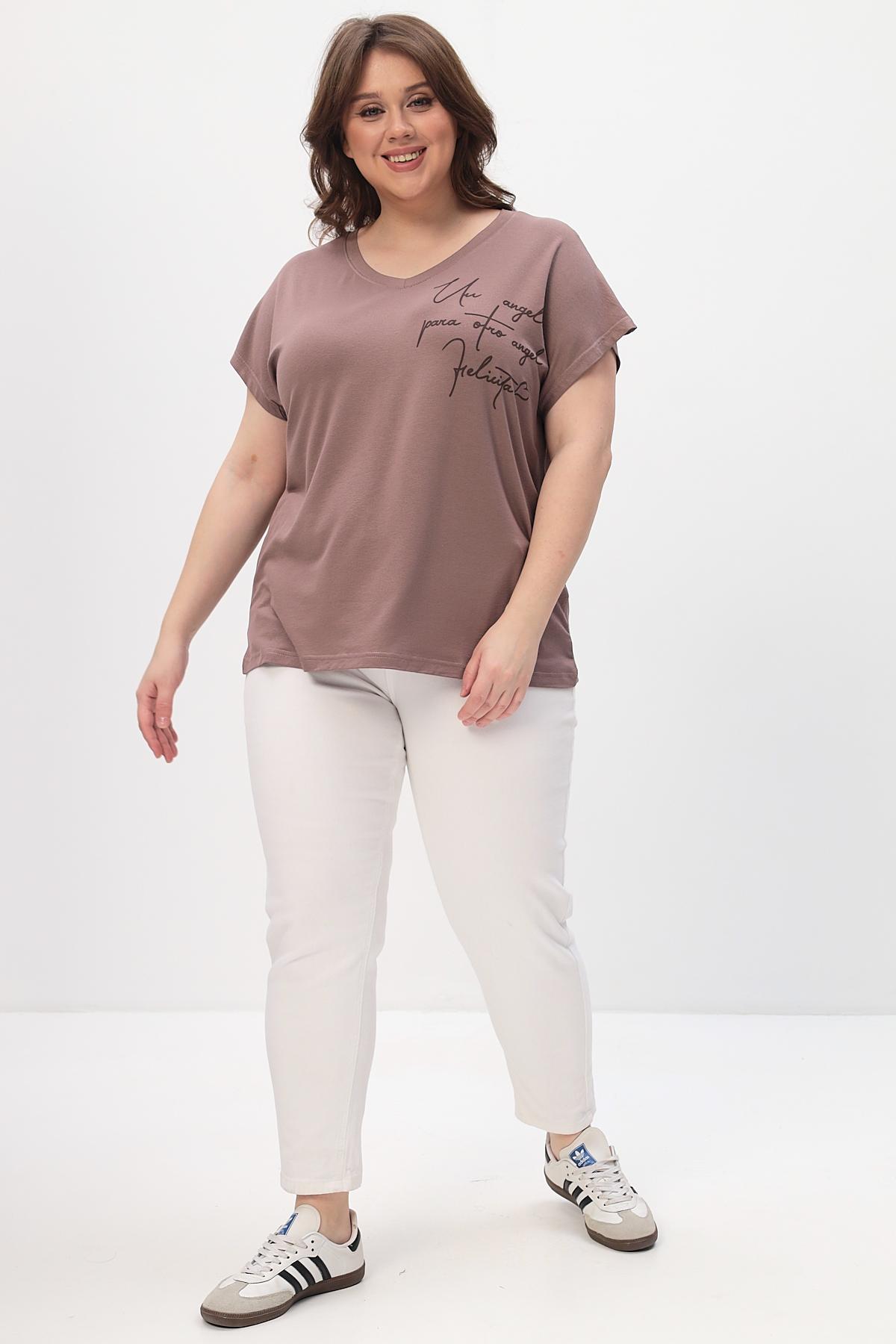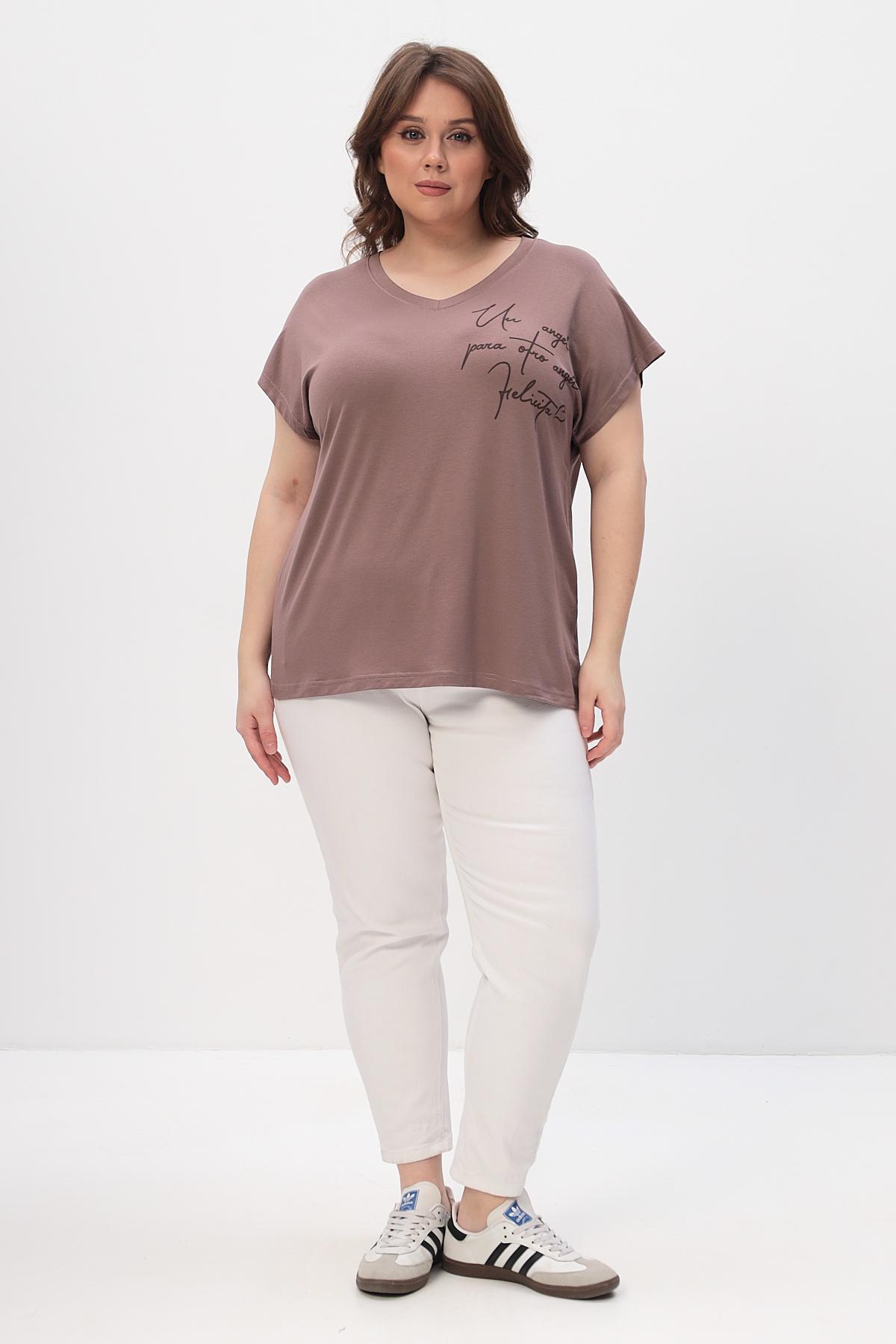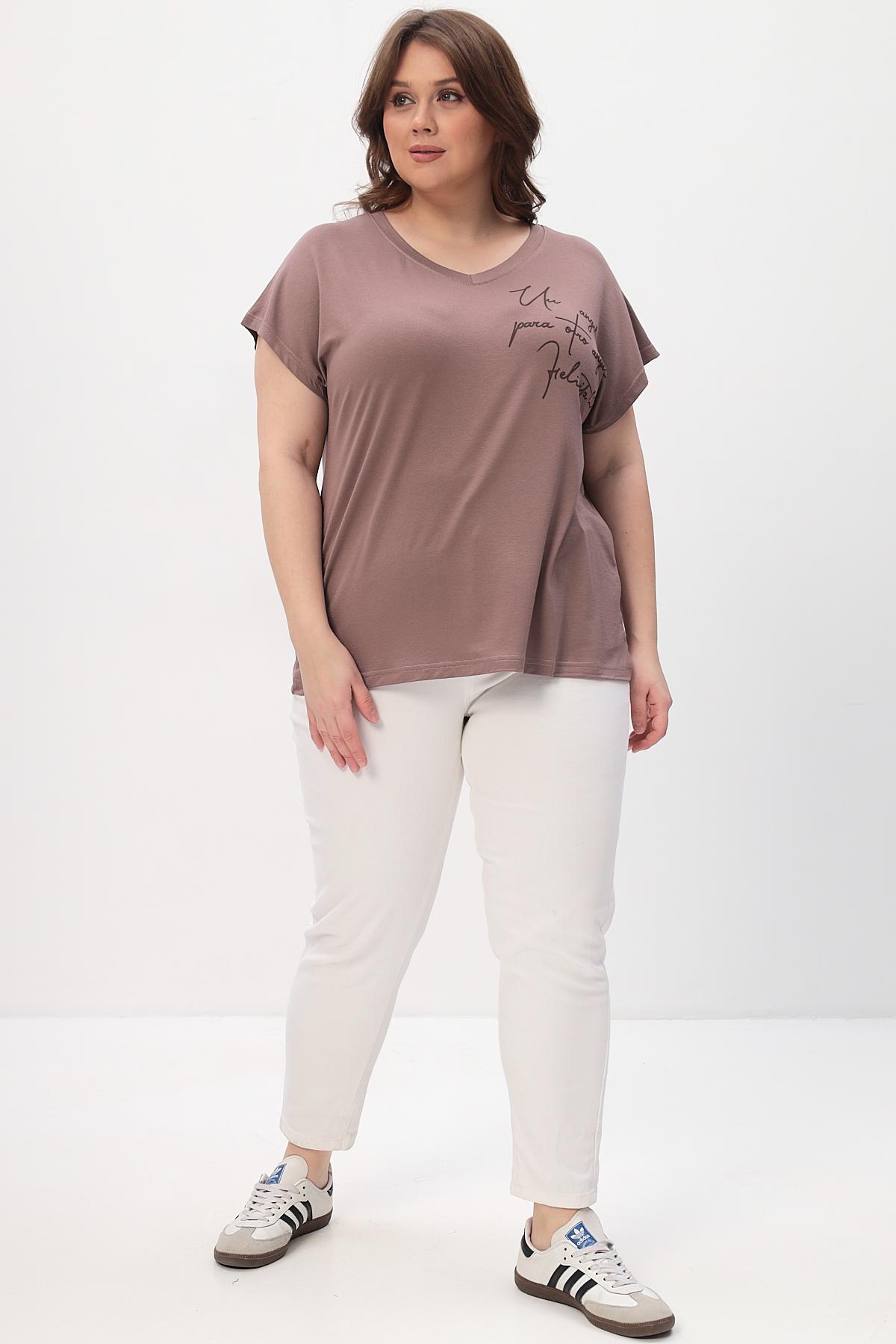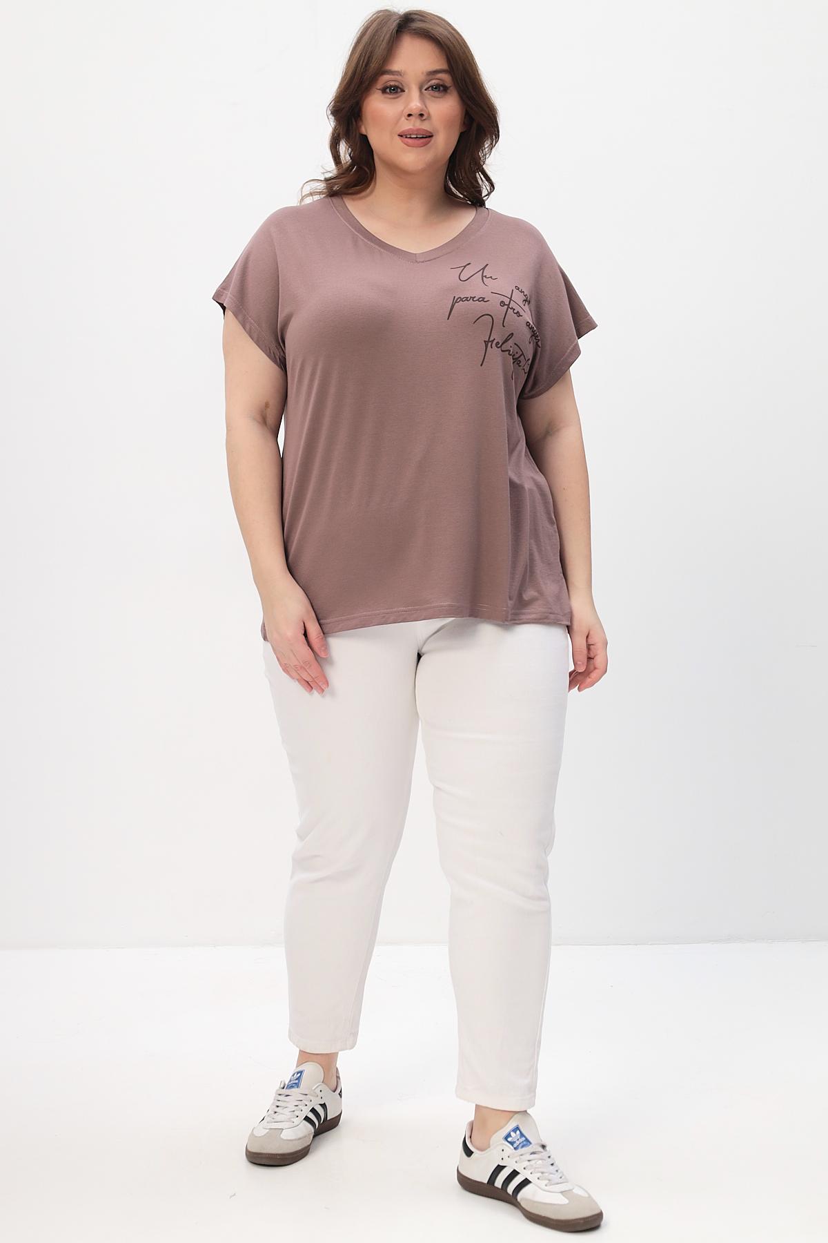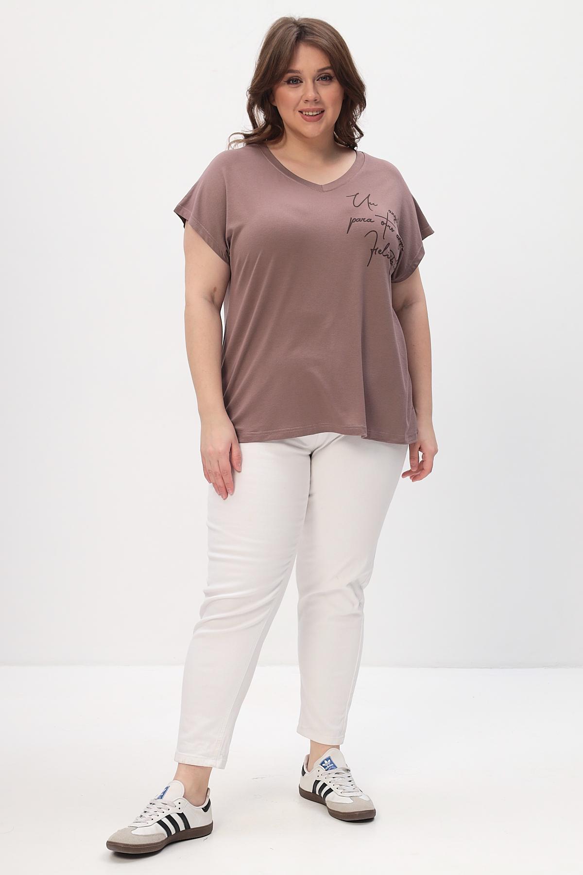 Женская футболка для милых девушек. Удобная и самая любимая вещь каждой девушки – простая и легкая футболка Бэтти. В ней Вы будете чувствовать себя комфортно. Приятная к телу ткань, воротничок мысиком, удобная длина, короткий рукав – вот детали идеальной футболки. Красивый, стильный принт на футболке придает особую нотку привлекательности. Футболку можно сочетать как со спортивным, так и деловым стилем одежды.