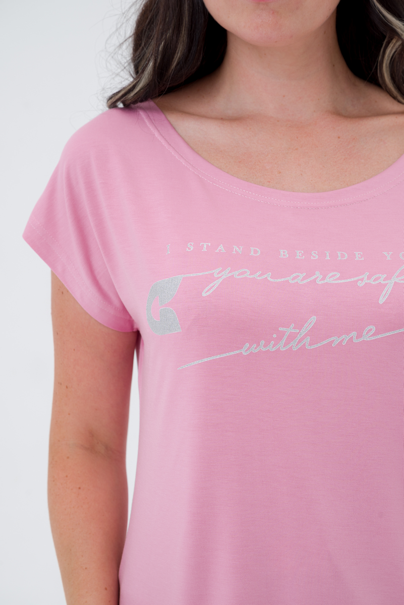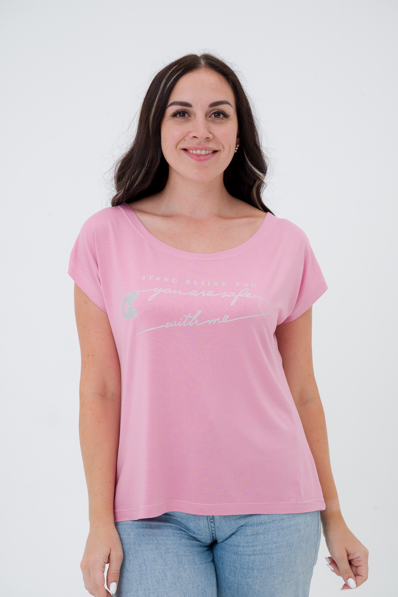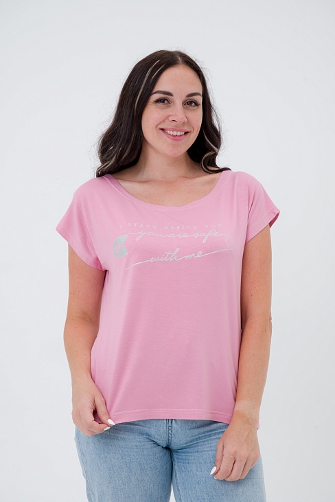 Стильная женская футболка Лирика из нежной вискозы — идеальный выбор для создания комфортного повседневного образа. Мягкая и приятная к телу ткань обеспечивает отличную воздухопроницаемость и комфорт при носке. Оригинальный принт You are safe на груди добавляет изюминку вашему гардеробу, делая эту модель универсальной для различных повседневных и casual-образов, подчёркивая вашу индивидуальность и стиль.
