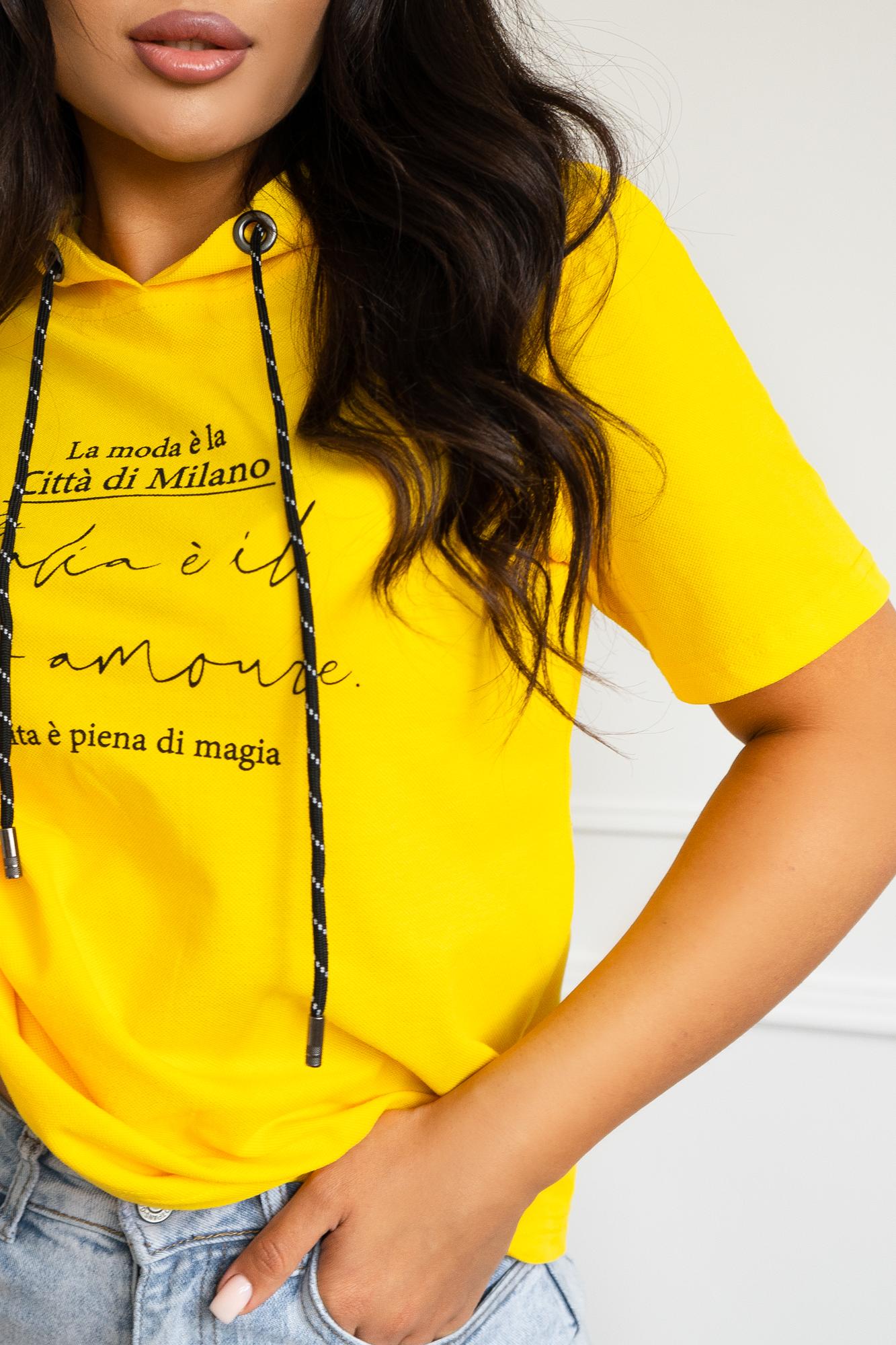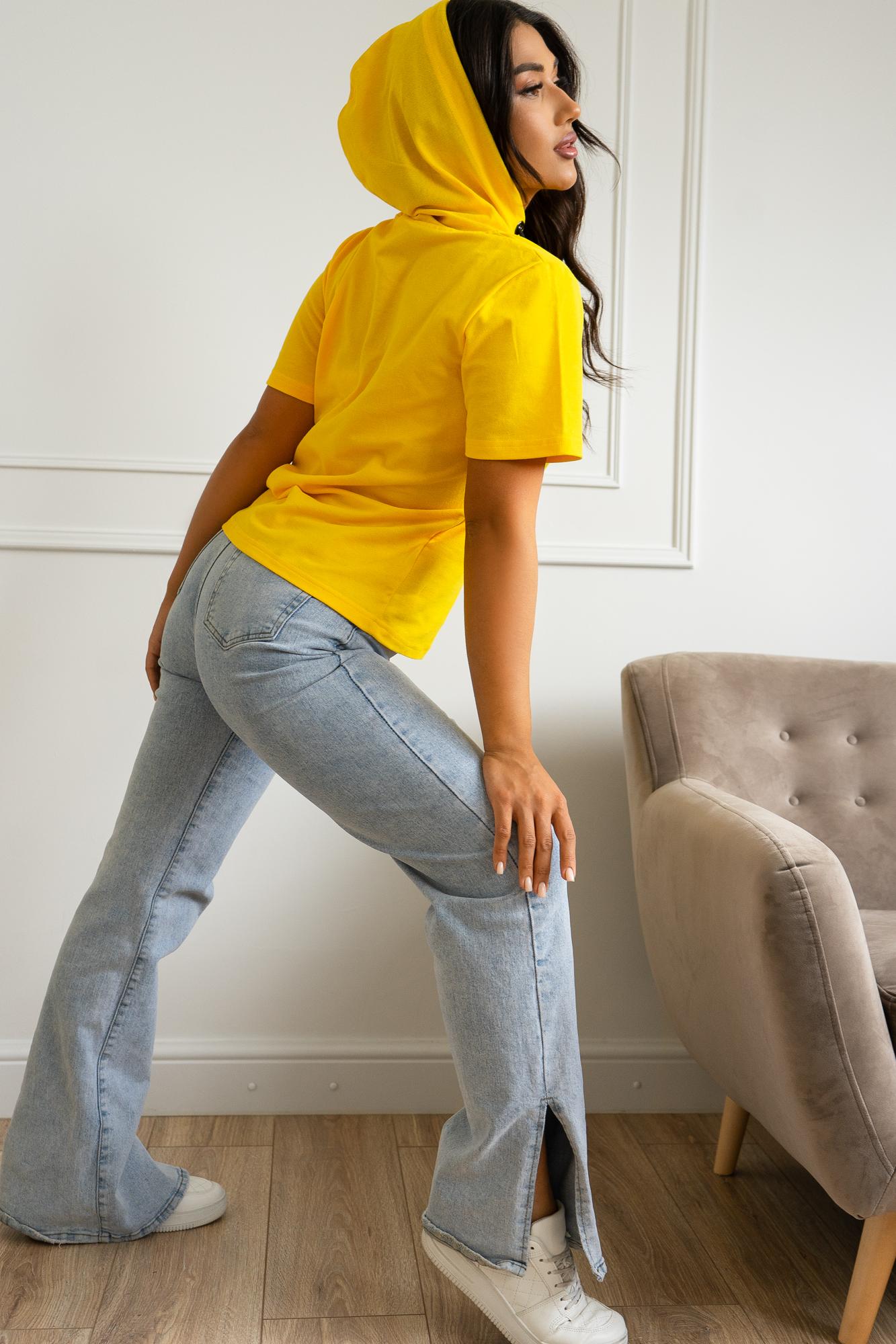 Спортивная футболка Трейси с капюшоном. Ткань Лакоста практична и удобна в повседневной носке. Футболка не мнется, пропускает воздух и максимально комфортна во время прогулок, занятий спортом или домашними делами. Стильная футболка с дизайнерским принтом и регулирующим шнурком выглядят модно и уникально.